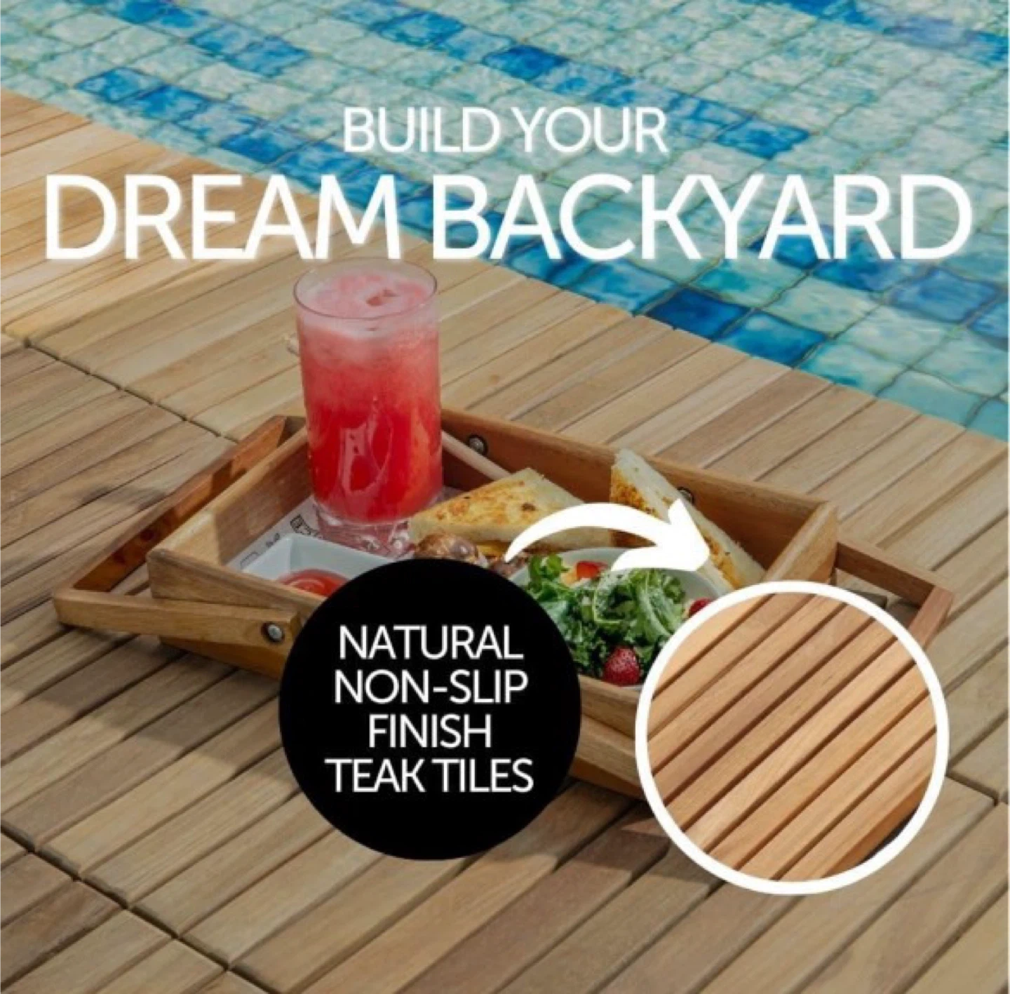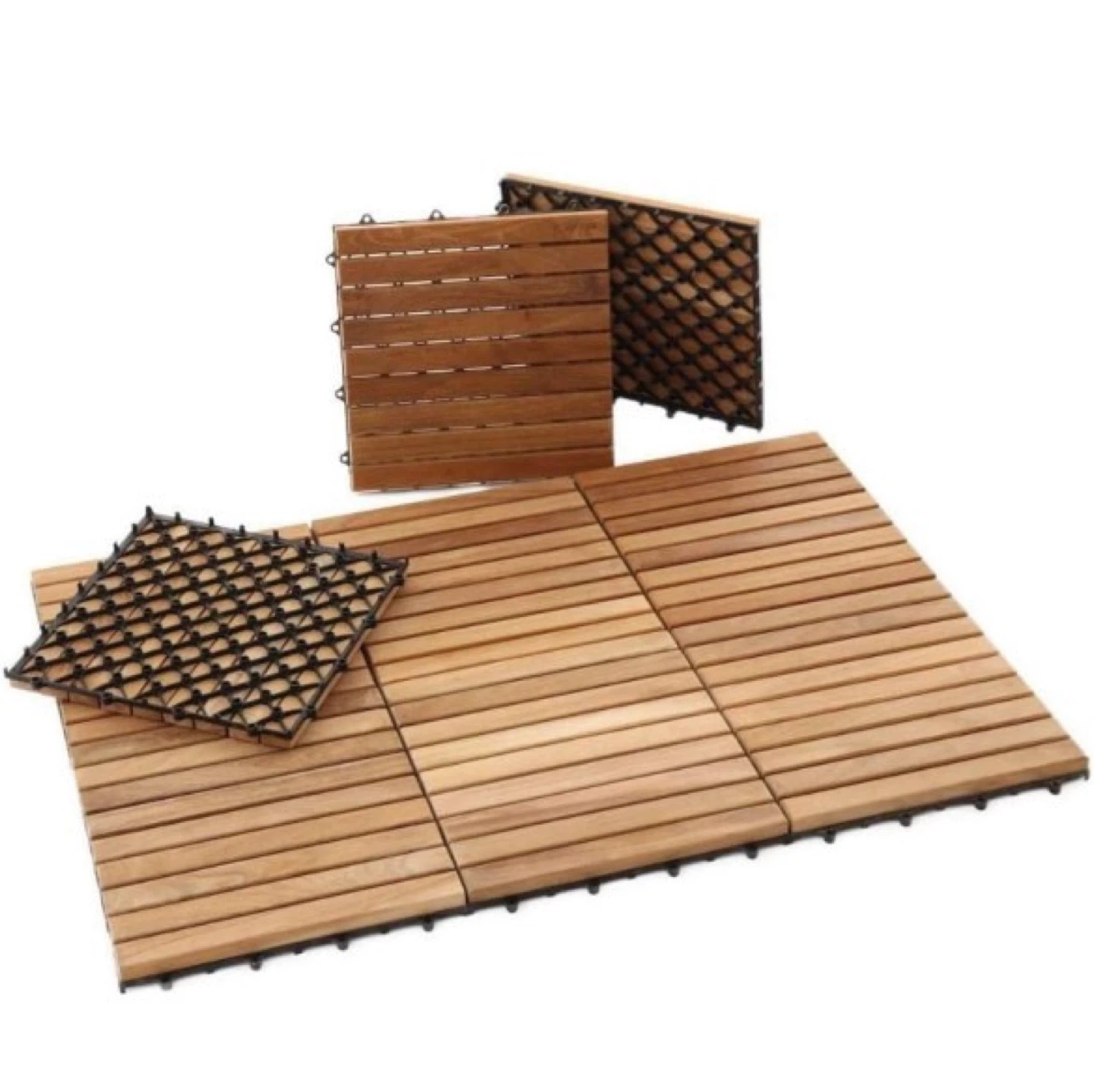 10Nordic Style Teak Wood Interlocking Tiles - Wooden Tile Floor Set for Indoor and Outdoor Use - Perfect for Sauna, Patio, Deck, Spa Floors - 10 Square Feet (12” x 12” - 9 Slat Design, Natural Finish)