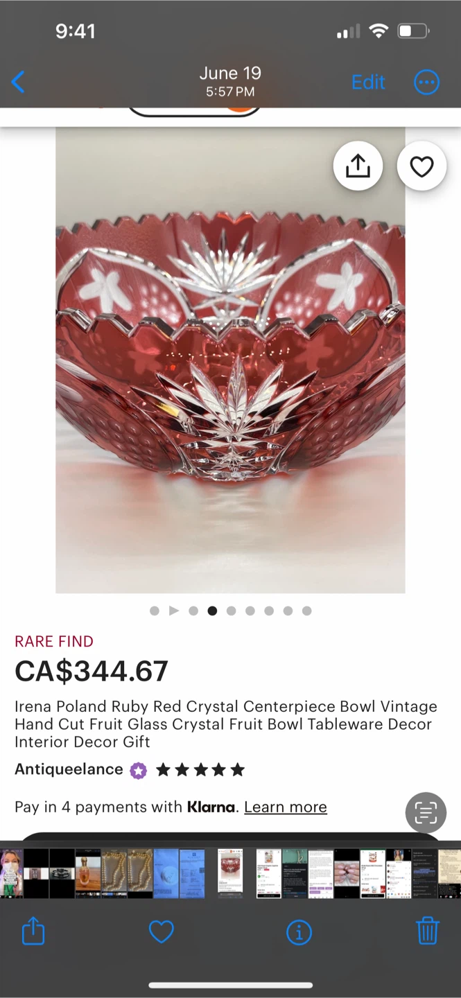Selling a beautiful Irena Poland ruby red crystal centerpiece bowl! It's a vintage hand-cut fruit glass crystal bowl perfect for tableware decor and interior decor gifts. Originally listed for CA$344.67 selling for 45have two so selling one to declutter. Too gorgeous of crystal to be just stored away . Should be on display. Perfect for the holidays