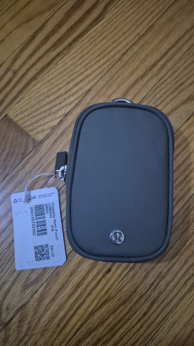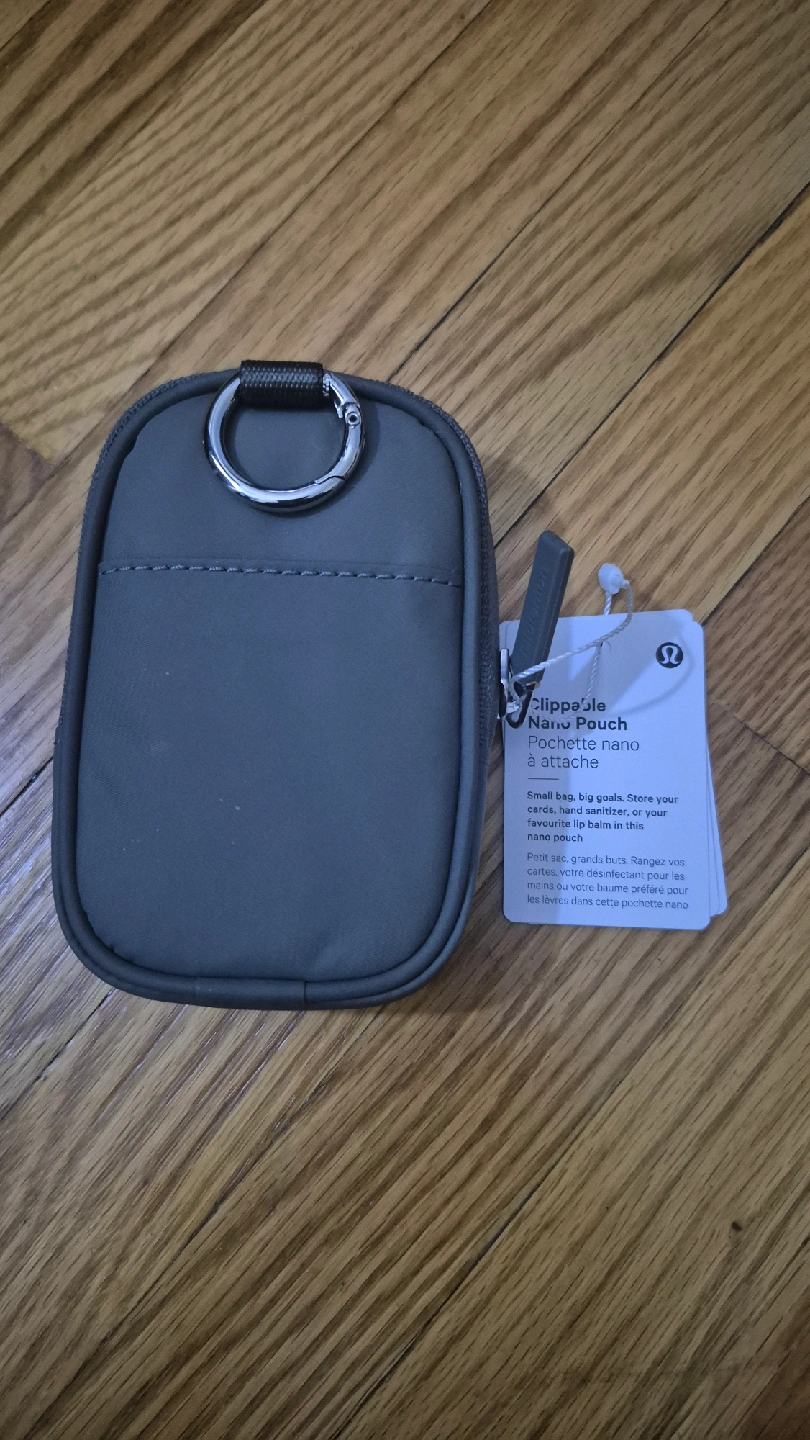 This Lululemon Clippable Nano Pouch in Grey Sage is perfect for storing small items. It's brand new with tags! It's a handy little pouch to clip onto your bag or keys