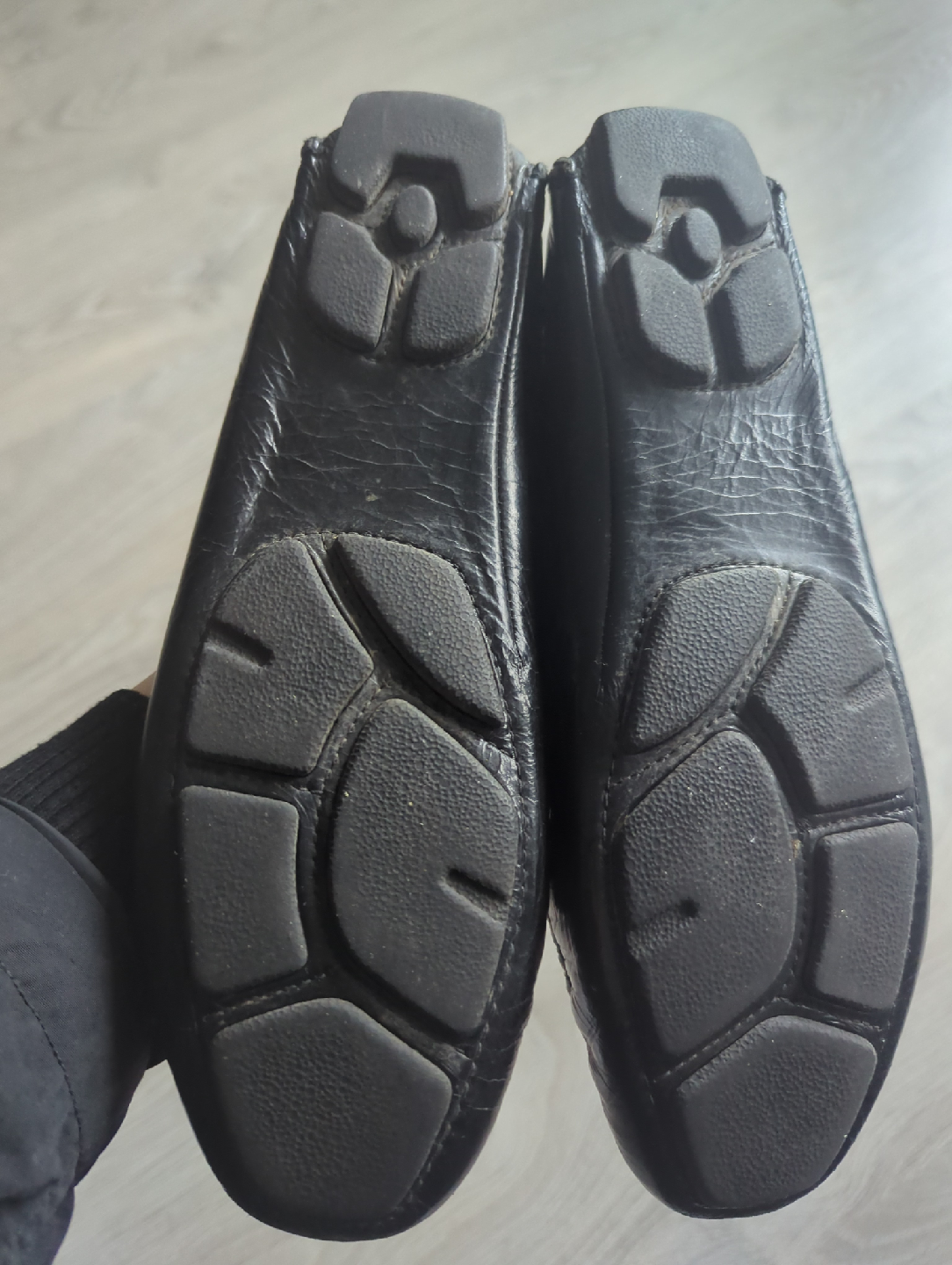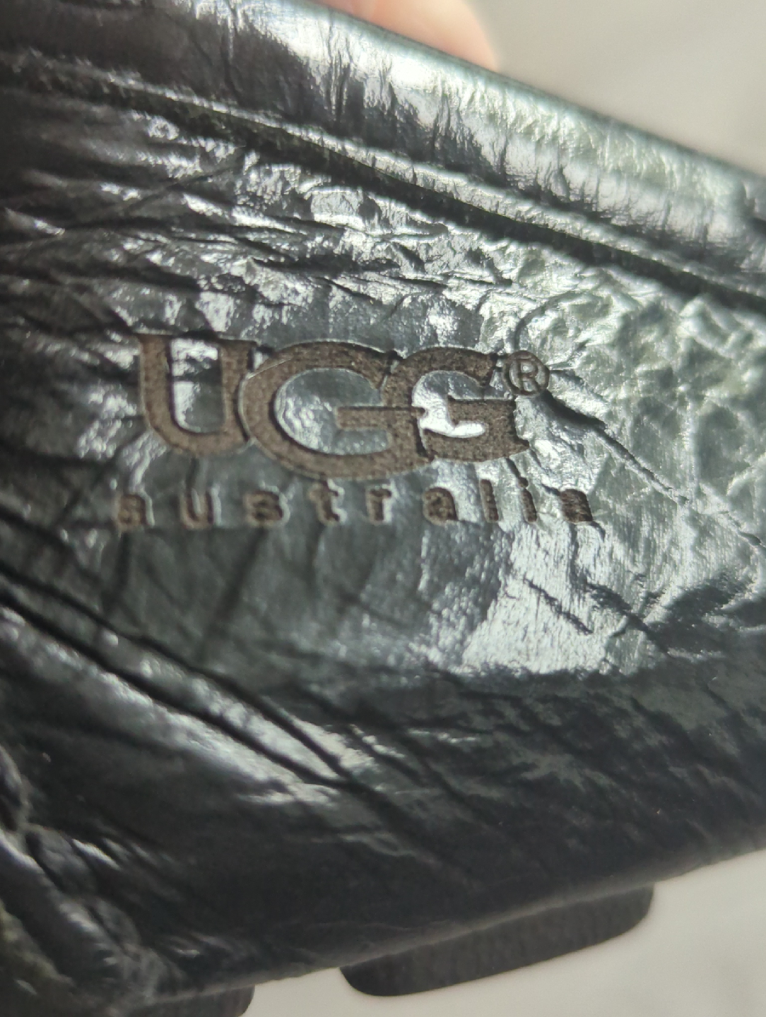 Selling a pair of UGG Australia loafers in black patent eather. These are a women's size US 8. The upper and lining are leather, the insole is shearling and the outsole is rubber. Perfect for a casual and comfortable everyday wear.
