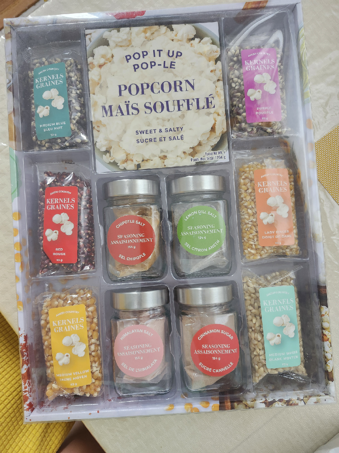 Get ready for movie night with this Pop It Up popcorn kit! It includes a variety of popcorn kernels and seasonings to create the perfect sweet and salty snack. Enjoy different flavours and colours of popcorn with this fun set