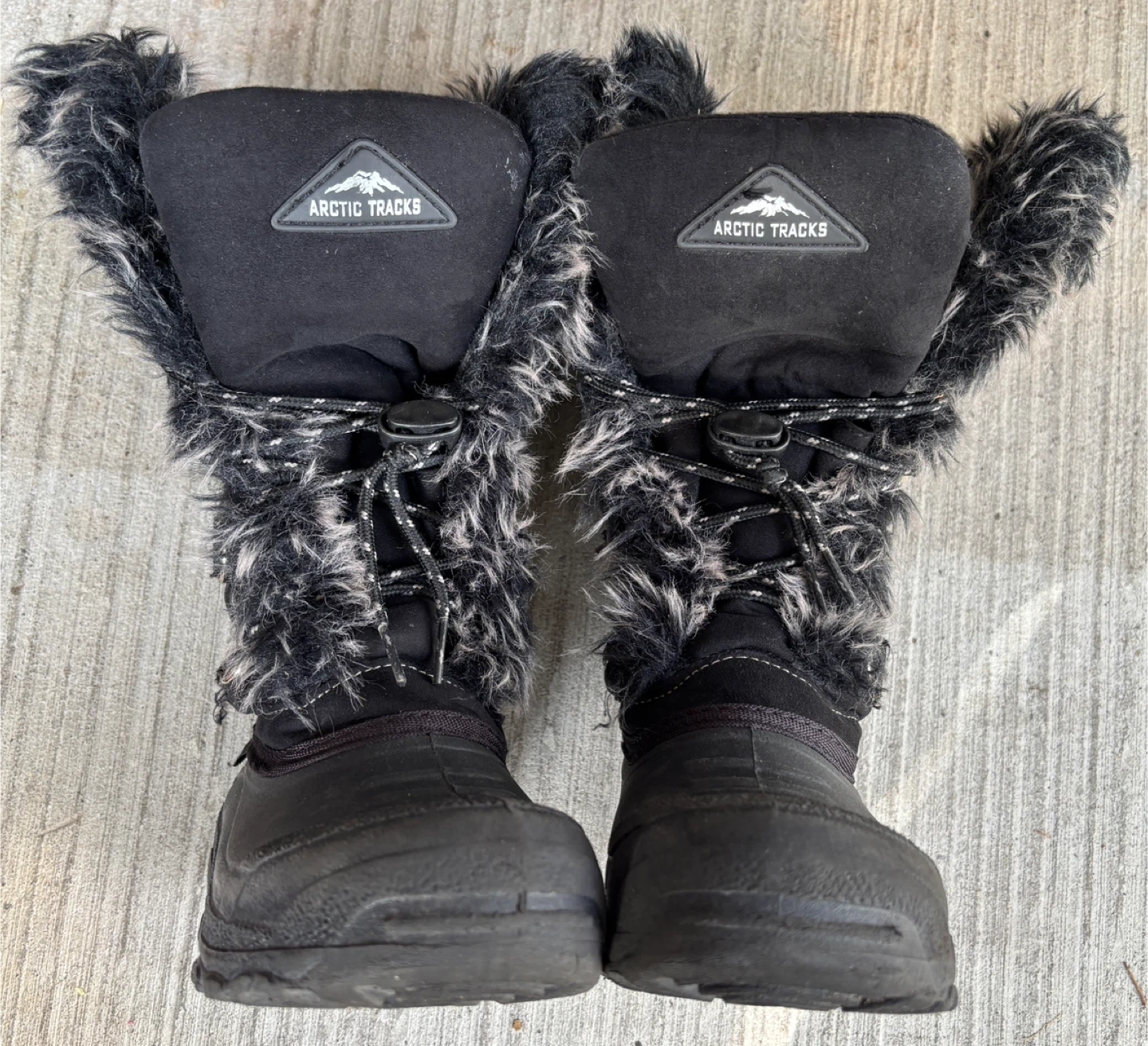 97Selling a pair of Arctic Tracks winter boots in kids size 12. They are designed and manufactured for harsh Canadian winters! They feature faux fur trim and buckle detailing. Perfect for keeping your feet warm and dry!