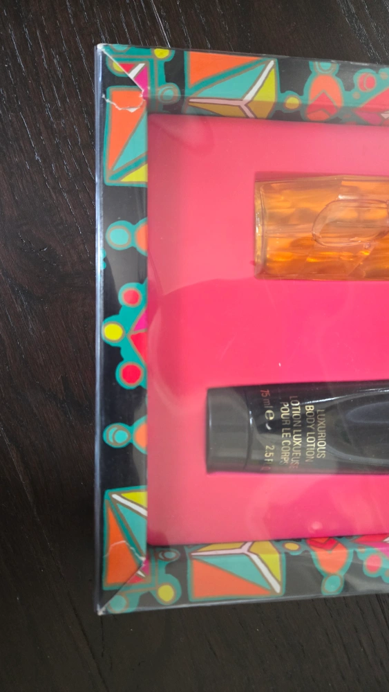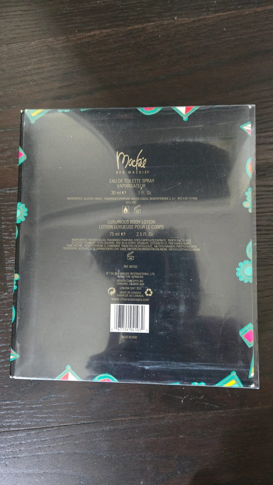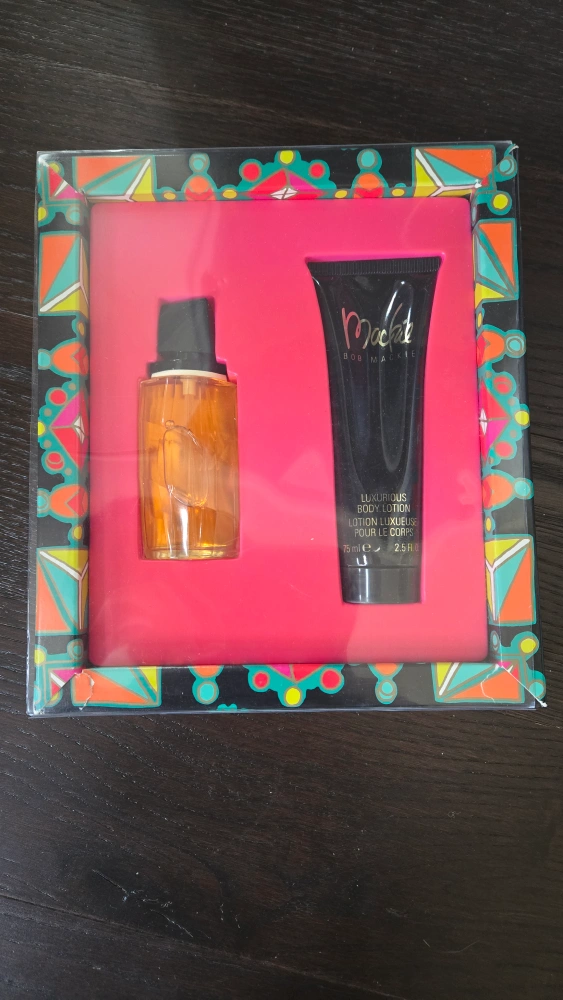 243Selling a Mackie Bob Mackie gift set, which includes: - Eau de Toilette Spray (30 ml / 1 fl oz) - Luxurious Body Lotion (75 ml / 2.5 fl oz) some damage to box - refer to picture