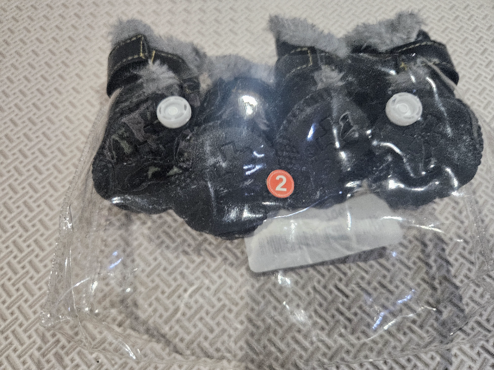 These dog boots are brand new and still in the original packaging! They're size 2 and feature a cute design with a secure strap to keep them on your furry friend's paws. Perfect for protecting their paws from the cold, snow, or rough terrain
