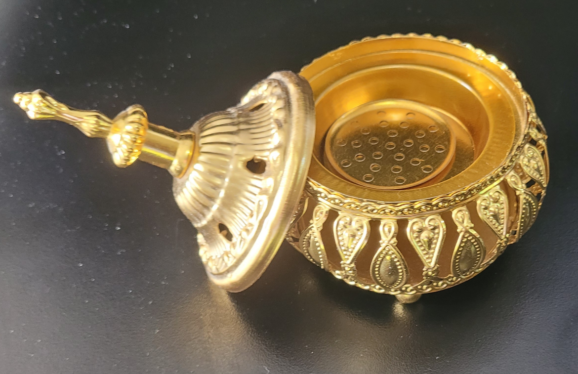 Selling a beautiful gold incense burner. It's in great condition and ready for a new home! Perfect for adding a touch of elegance to any room