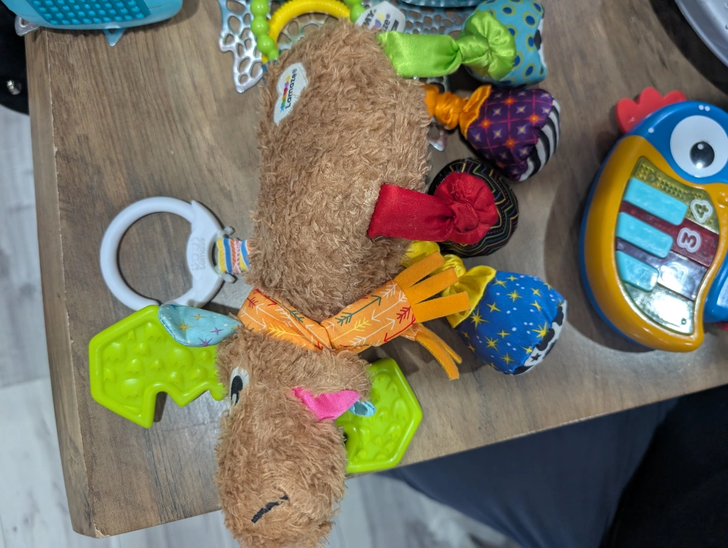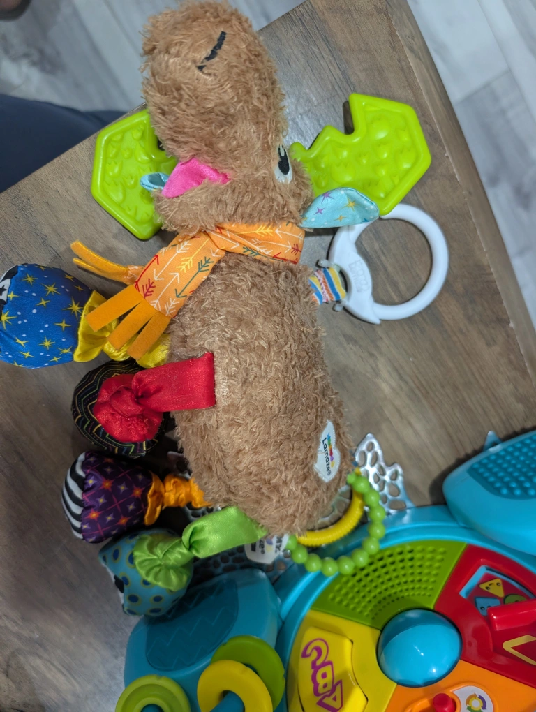 109A cute Lamaze moose toy that's sure to entertain your little one! It has a variety of textures and colours to stimulate baby's senses. It's in great condition!