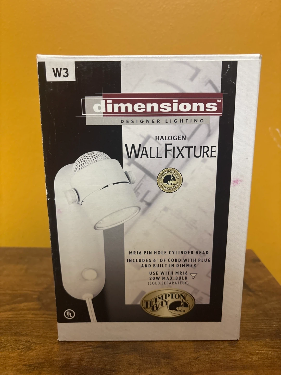 Free a Dimensions designer lighting halogen wall fixture by Hampton Bay. It's a wall fixture with an MR16 pin hole cylinder head. It includes a 6' cord with plug and built-in dimmer. It uses with MR16 20W max bulb (sold separately)