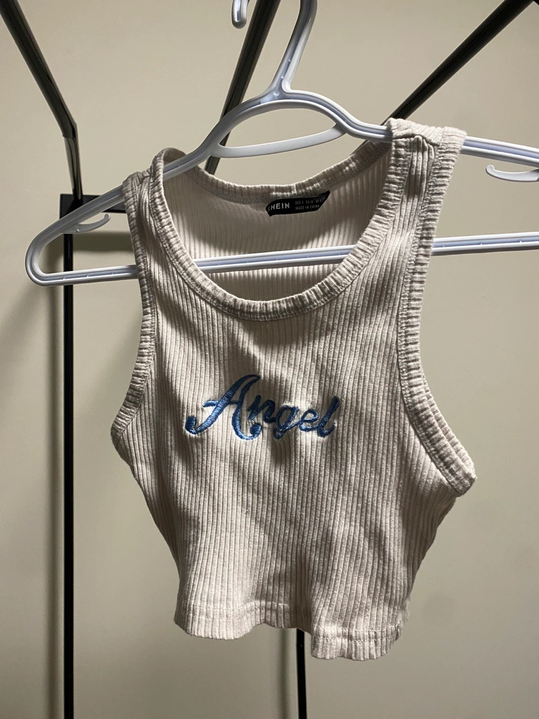 10Cute SHEIN crop top with 'Angel' embroidered on the front! It's a ribbed material and in great condition