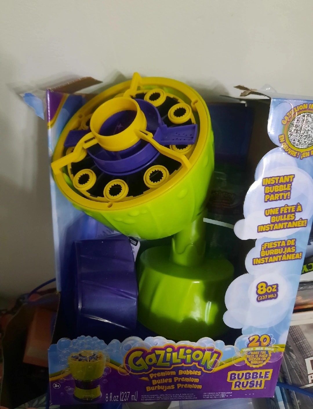 Get ready for bubble fun with this Gazillion Bubble Rush machine! It creates tons of bubbles for instant party fun. The box includes an 8oz bottle of premium bubble solution. Perfect for kids aged 3 and up!