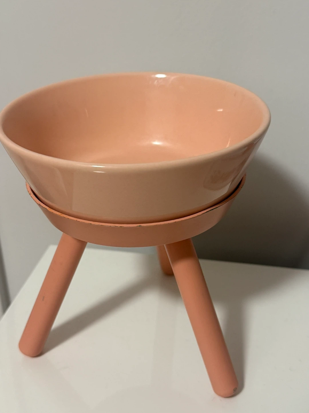Selling a cute raised pet ceramic bowl in a lovely pink colour! It's in great condition and perfect for keeping your furry friend's food or water at a comfortable height. The bowl is detachable for easy cleaning