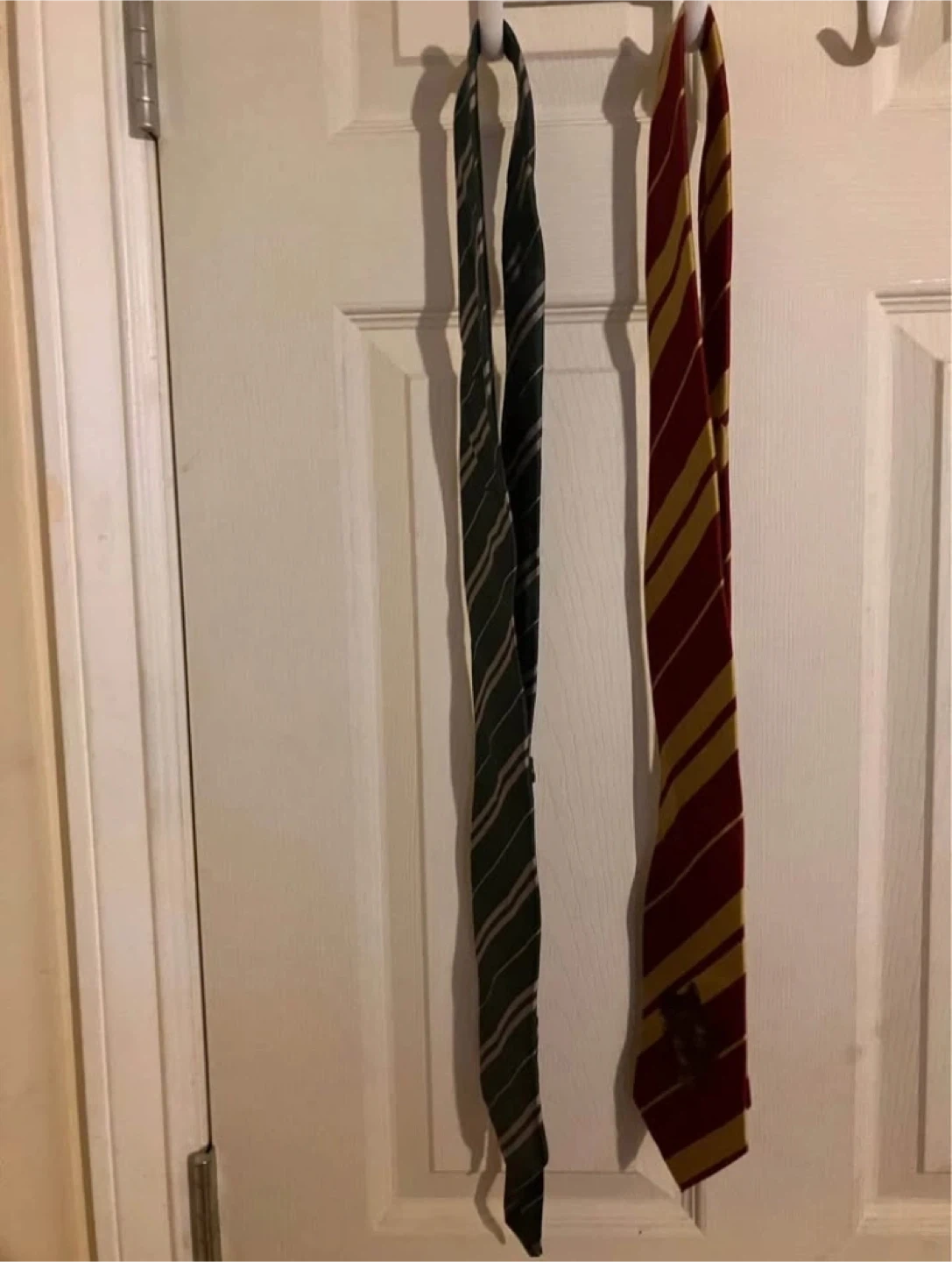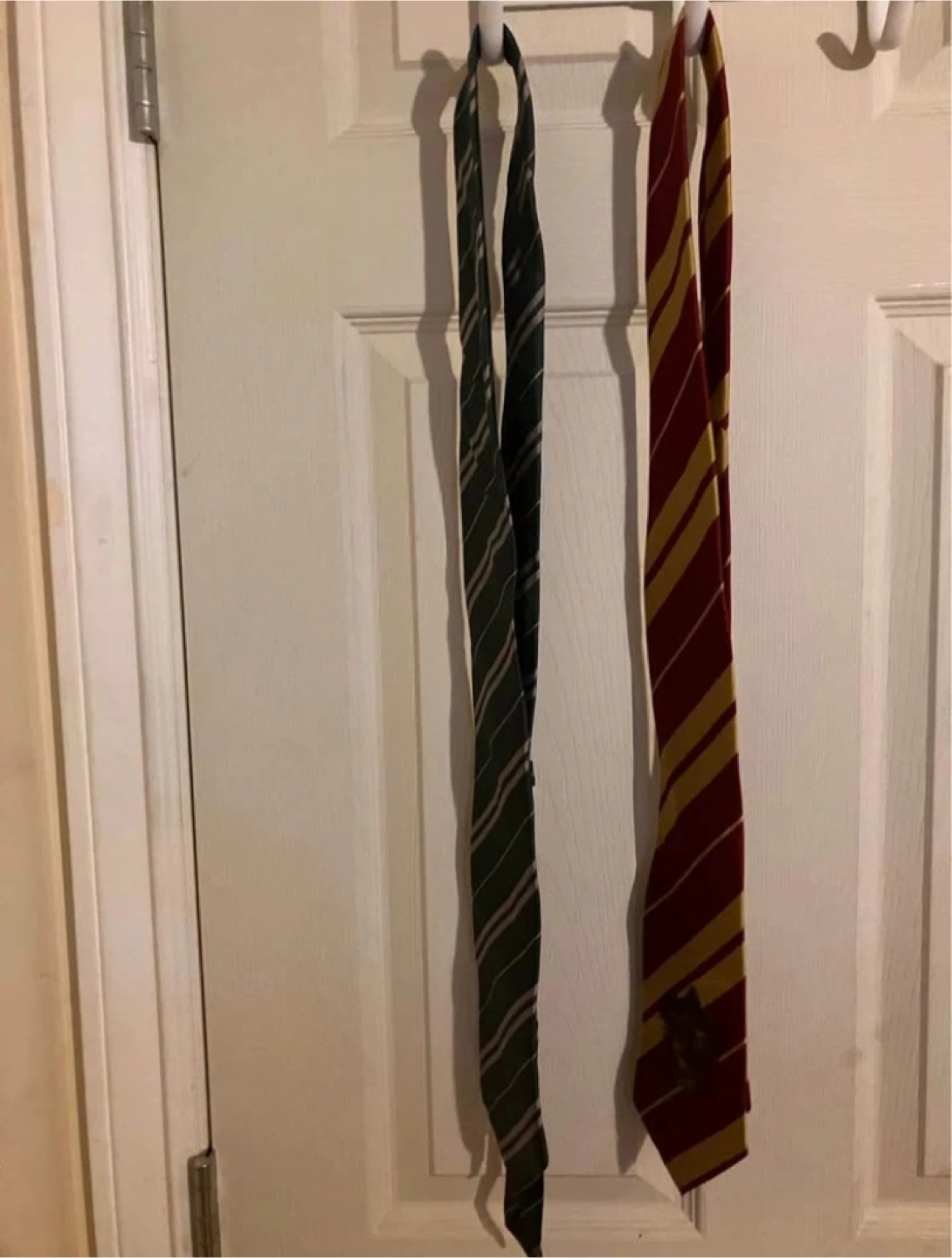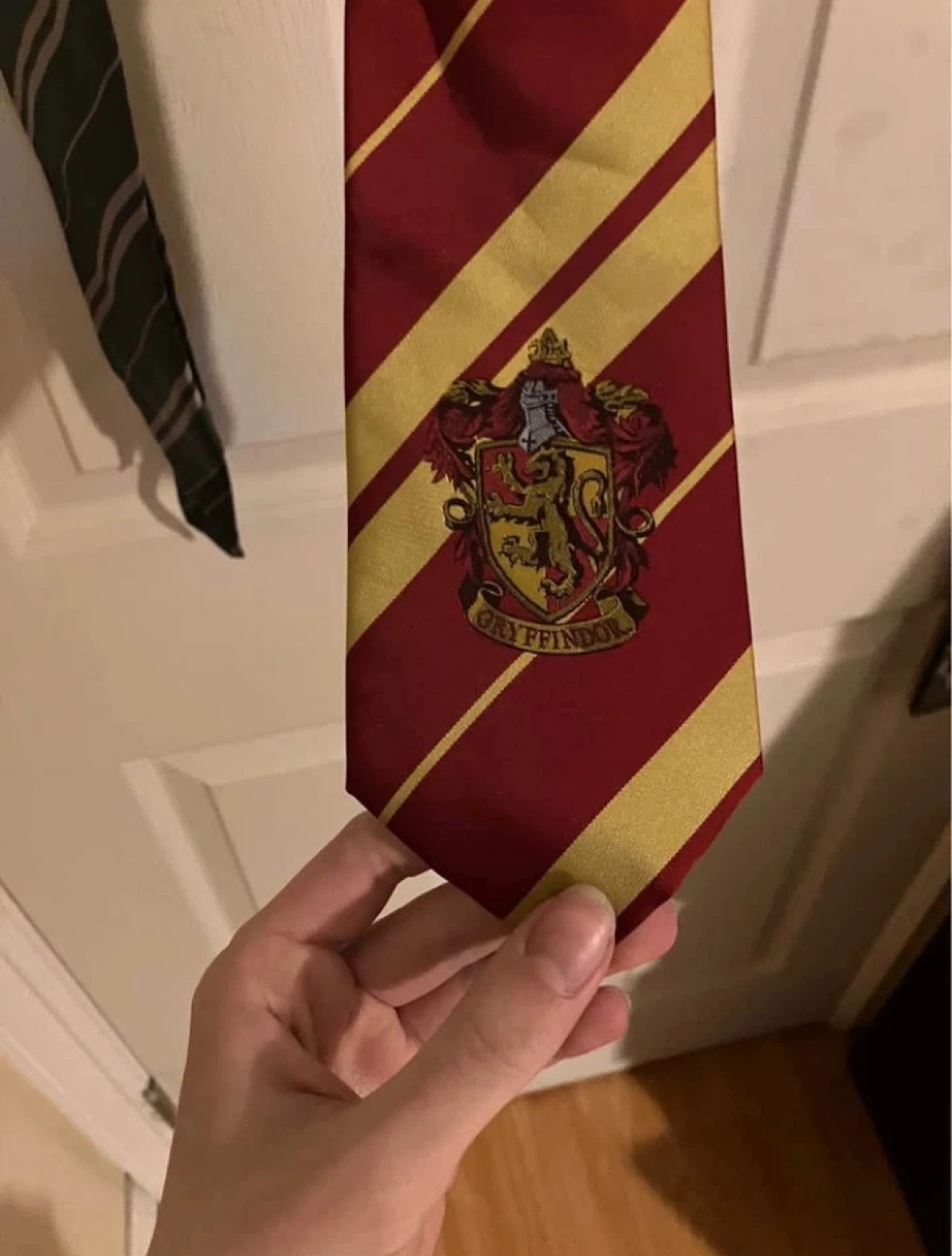 Selling a Gryffindor tie from the Harry Potter series! It's in great condition and perfect for any fan looking to add a touch of Hogwarts to their wardrobe. The tie features the Gryffindor house crest in red and gold.