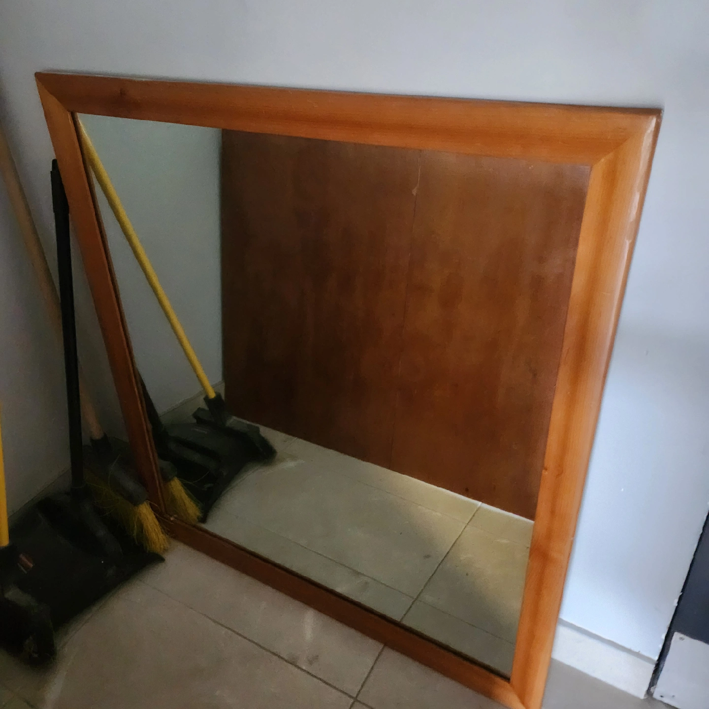 Selling a wooden framed mirror. It's in good condition and would look great in any room of the house!