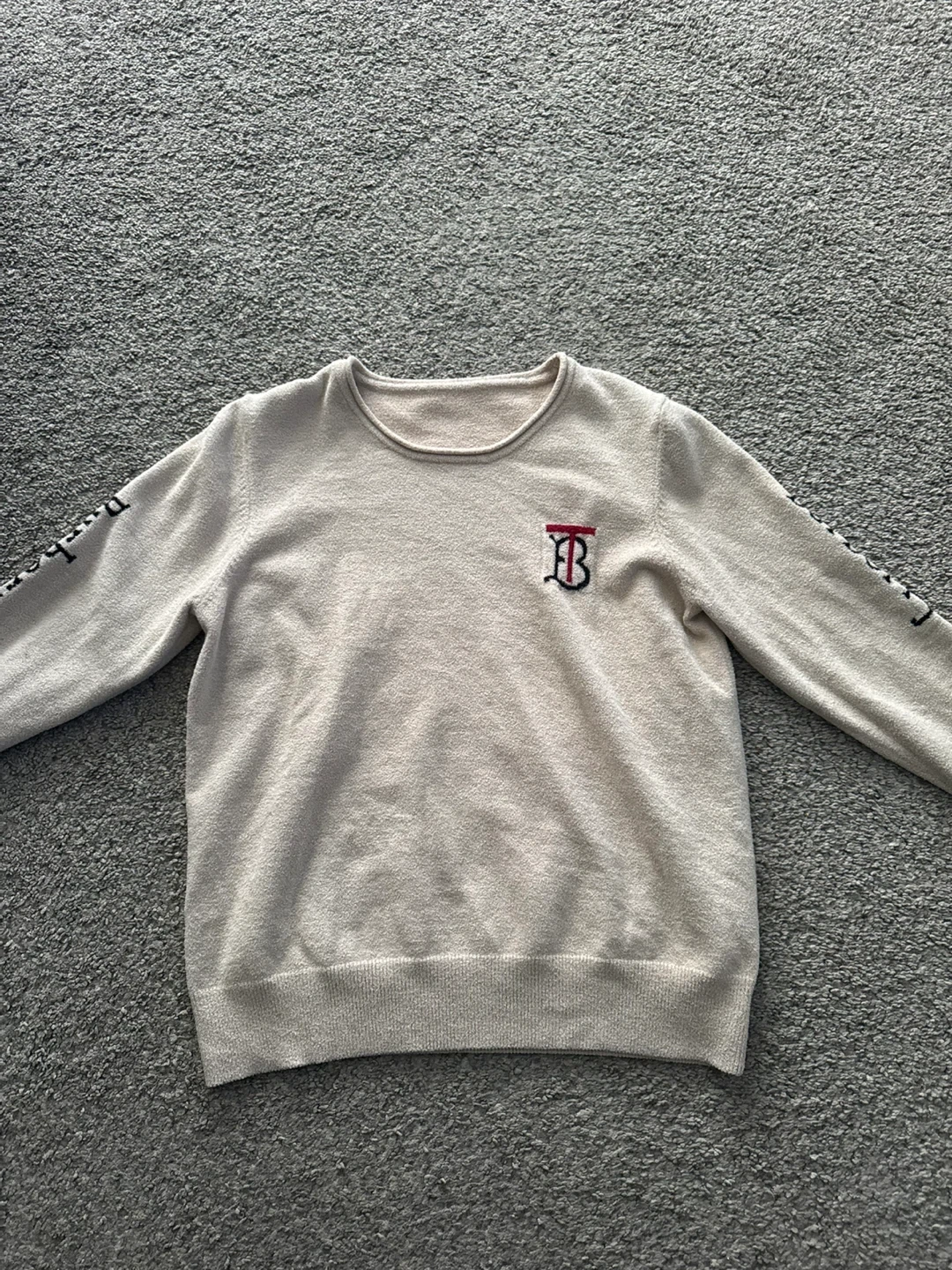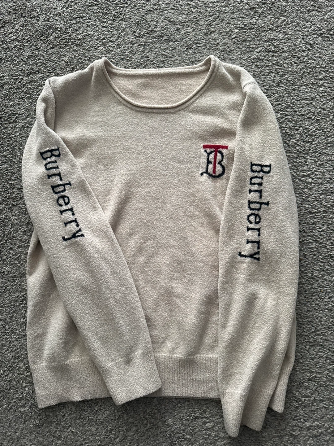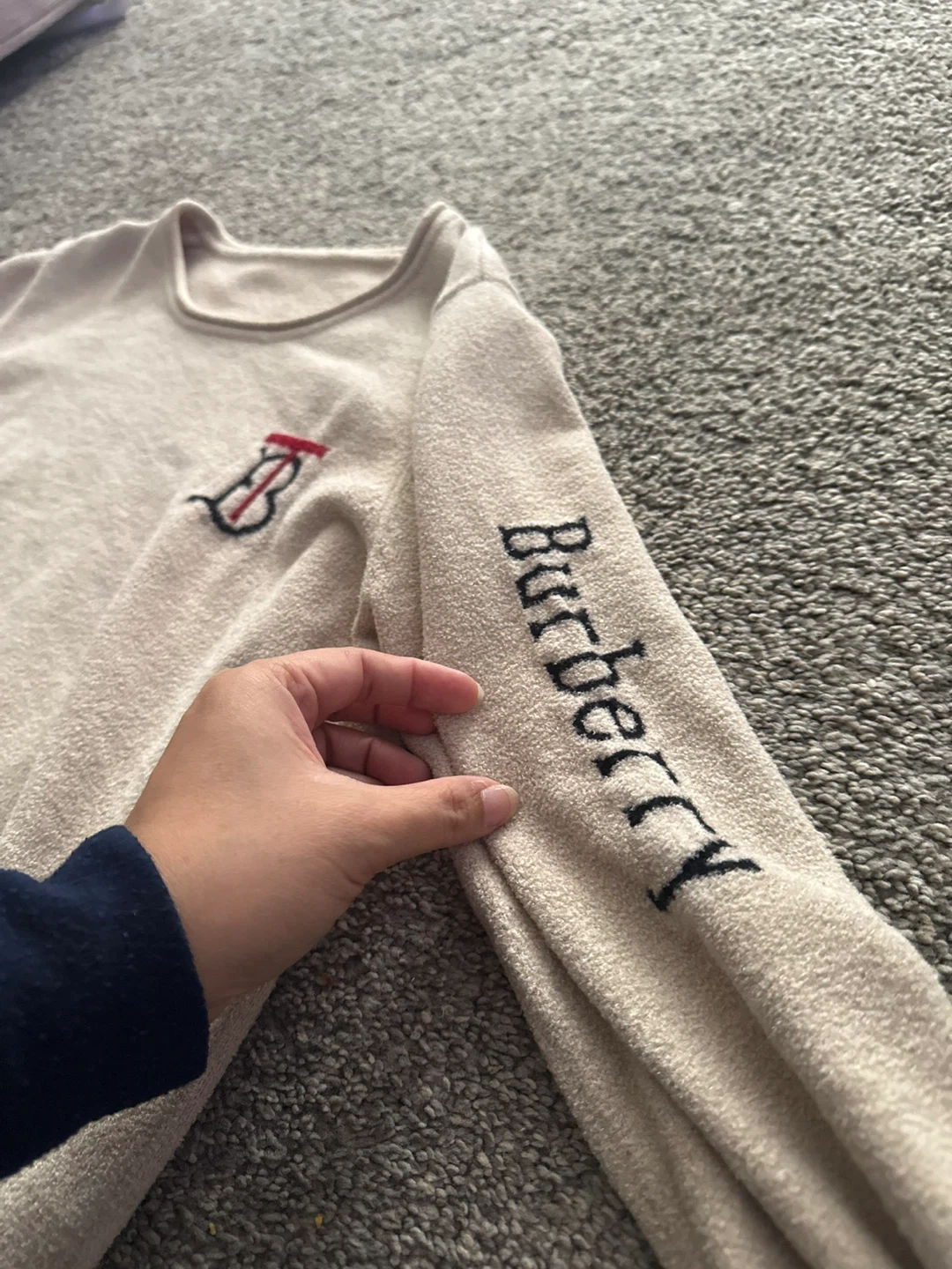 23Selling a cozy Burberry crewneck sweater! It features the Burberry logo embroidered on the chest and sleeves. It's in great condition and ready for a new home!