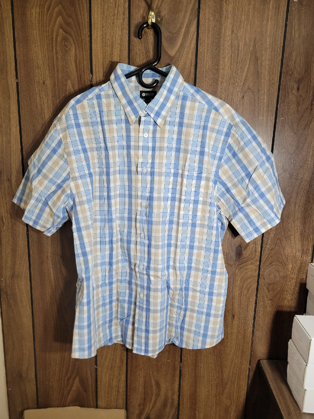 Buy & SellHaggar Clothing XL Plaid ShirtHaggar Clothing XL Plaid Shirt$5Here's a Haggar Clothing shirt in size XL. It features a light blue and beige plaid pattern. The shirt is made of 60% cotton and 40% polyester.ConditionGoodSizeXL BrandHaggarWHERE TO MEETCheck LocationView MapSELLERverifiedDAVIDDonevan19710 reviews0 chats·0 favorites·1 views