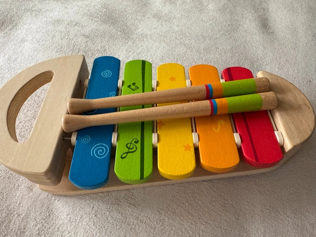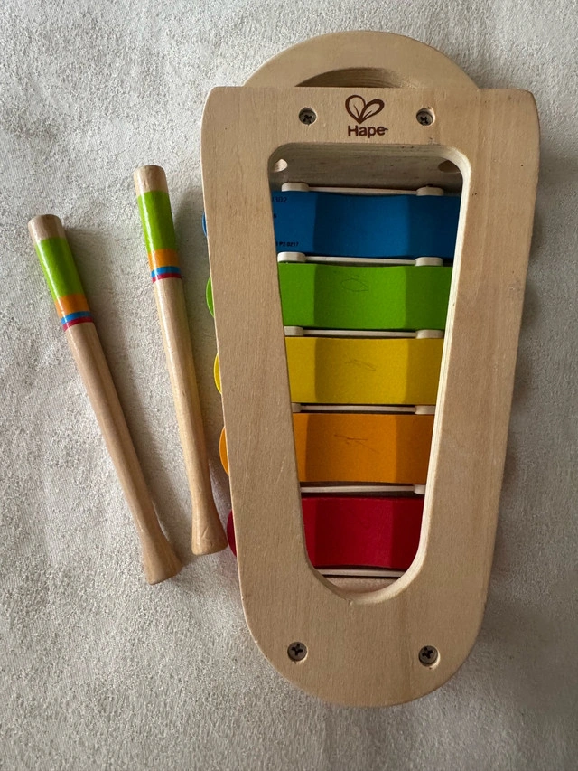 27Introduce your toddler to the joys of music with this classic Fisher-Price wooden xylophone! Features 8 colorful keys and a tethered mallet. Encourages hand-eye coordination, fine motor skills, and auditory development. Gently used, all parts intact. Smoke-free home. (Check my other listings.)