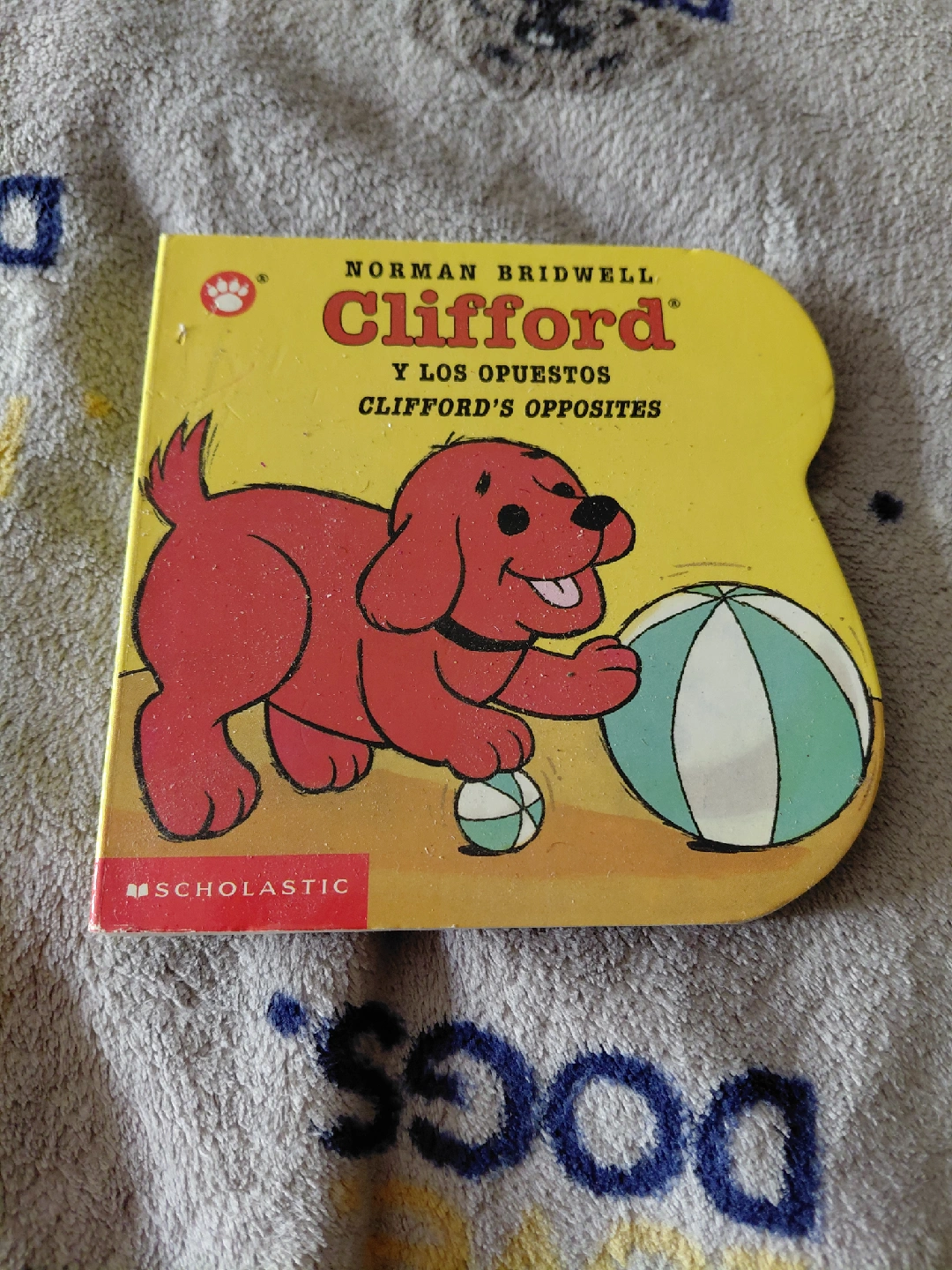 Selling a board book titled "Clifford's Opposites" by Norman Bridwell! It's a Scholastic book featuring Clifford the Big Red Dog. Perfect for little ones learning about opposites
