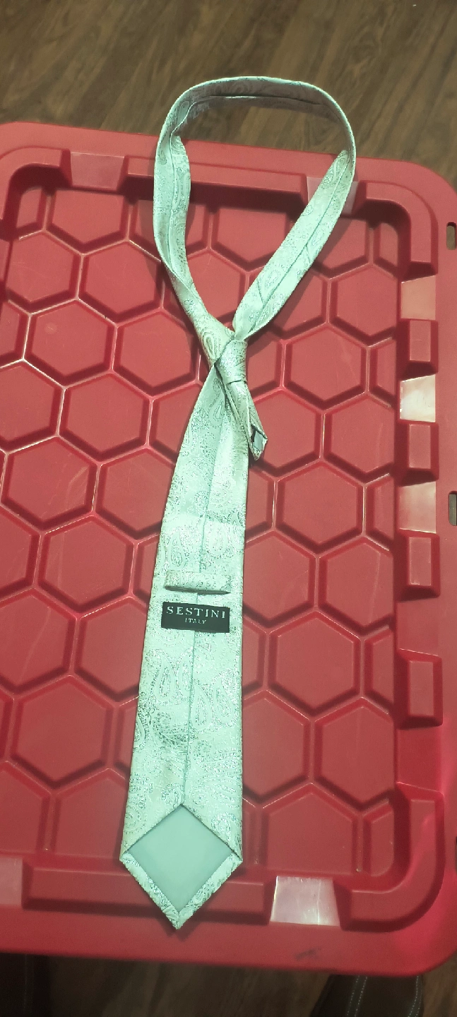 90A stylish Sestini Italy necktie in a white pattern colour. Perfect for adding a touch of elegance to any outfit!
