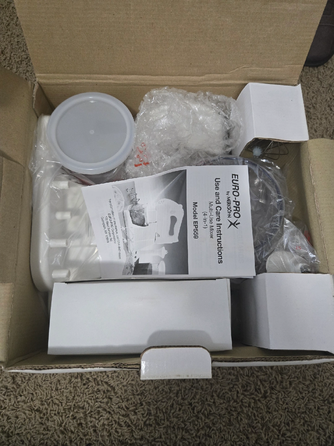 Selling a Euro-Pro Grand Chef 4-in-1 Multi-Use Mixer with Blender and Power Chopper! This appliance has 4 functions in one convenient and powerful design, perfect for preparing a wide variety of meals. It features 250 Watts of power for blending, chopping, kneading, and mixing. Never been opened/used. Still in original packaging.