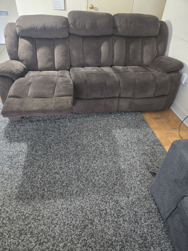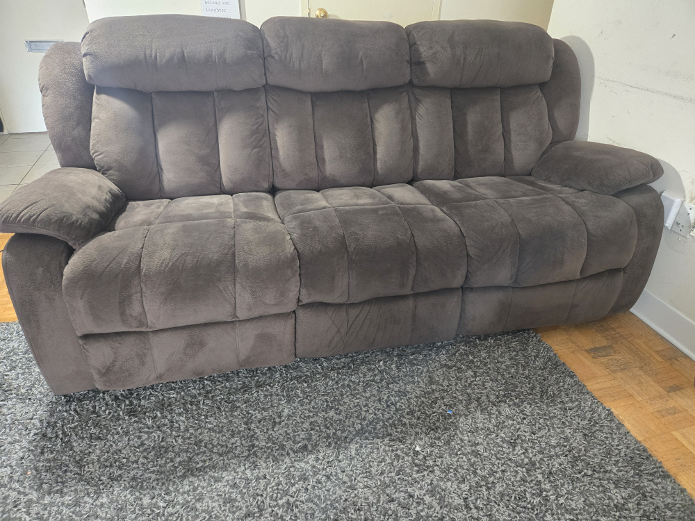 Leon's comfy brown reclining sofa. It's in good condition and ready for a new home. Perfect for relaxing after a long day!