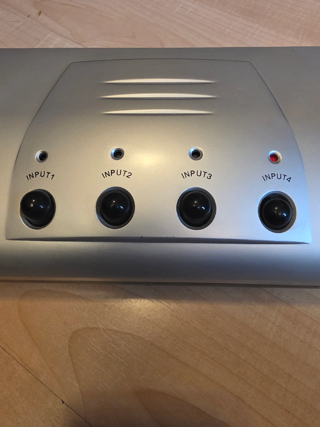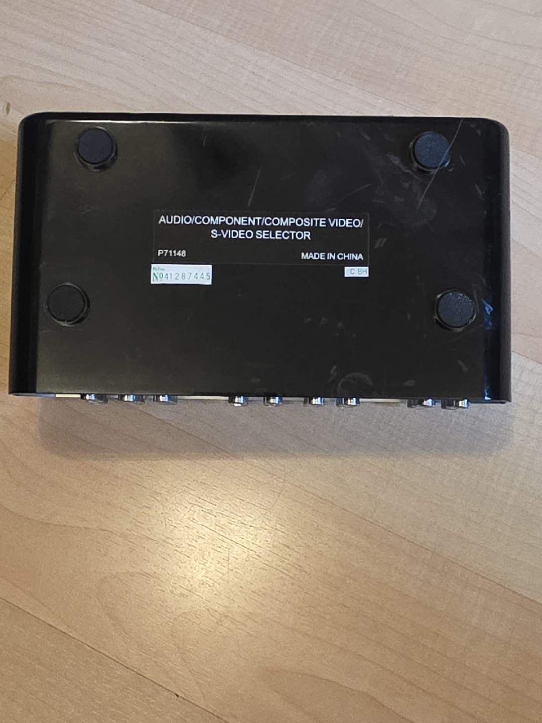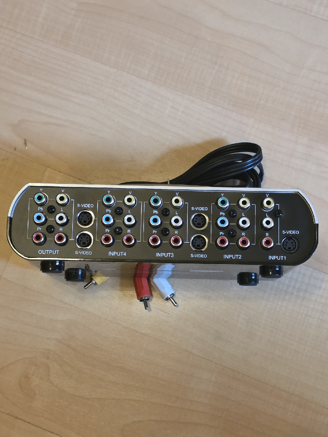 Selling an audio/component/composite video/S-video selector. It has multiple inputs and outputs, perfect for connecting various devices. Includes the necessary RCA cables