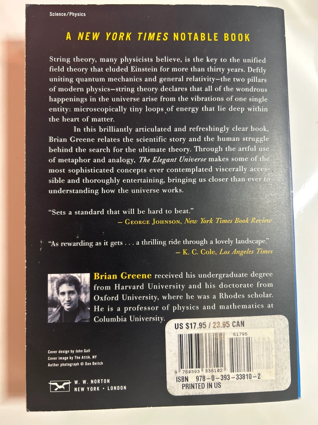 1000+Selling 'The Elegant Universe' by Brian Greene! It's a New York Times Notable Book that dives into superstrings, hidden dimensions, and the quest for the ultimate theory. A fascinating read for anyone interested in science and physics Cash only. Msg to schedule pick up:)