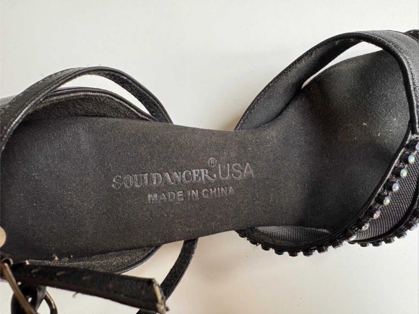Selling a pair of SoulDancer USA dance shoes in black! They are a size 6.5. Suede sole perfect for dancing. They have been worn only once for a performance and are in perfect like new condition.