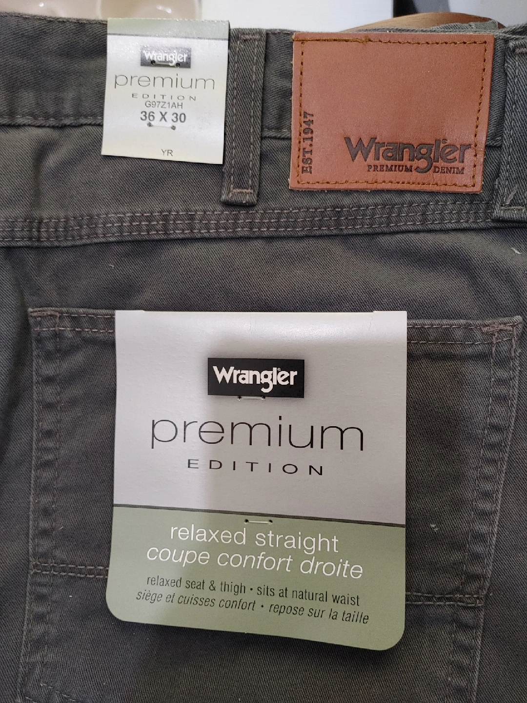 1000+🧡WRANGLER PREMIUM GREY PANTS. 🧡BRAND NEW WITH TAGS. 🧡MENS SIZE 36 X 30 🧡I AM LOCATED IN THE YONGE AND STEELES AREA FOR PICKUP.