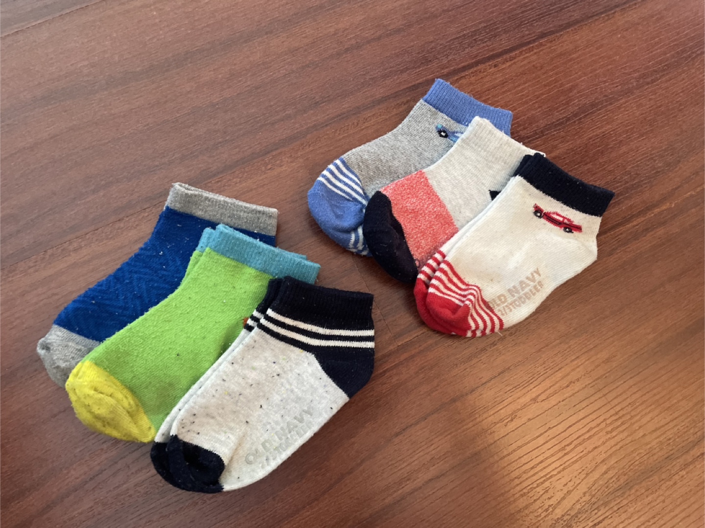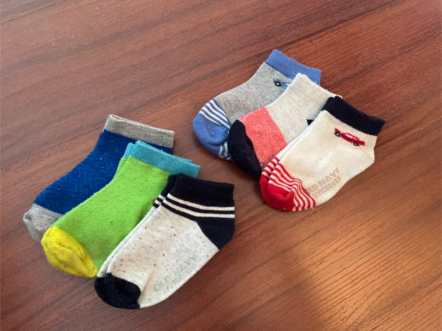 A set of gently used toddler socks from Old Navy! These are size 2/3T and feature a variety of colours and patterns. Perfect for keeping those little feet warm and cozy during playtime or outings