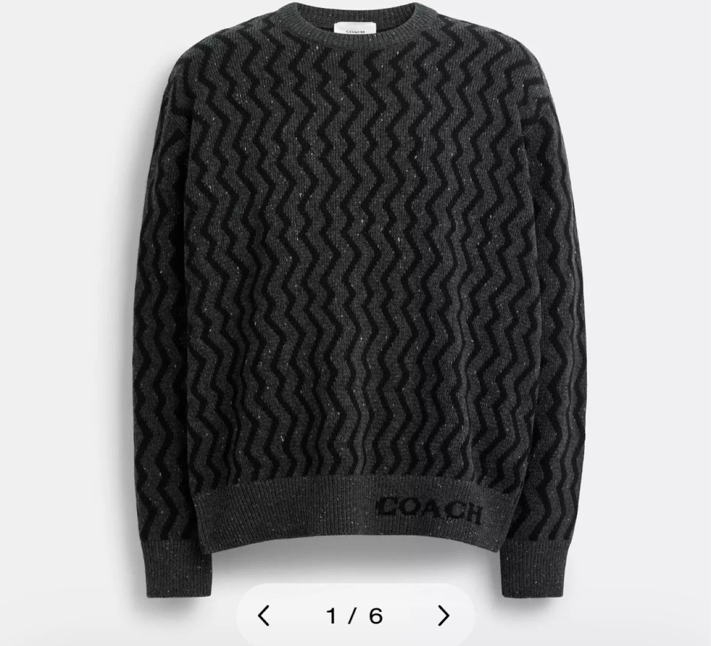 Selling a Coach men's jacquard crewneck sweater! Knit with a stylish zigzag pattern in speckled gray, relaxed fit, and finished with rib trim. Brand new and retails for $495. Can be worn unisex, bought wrong size as a gift and cannot return.