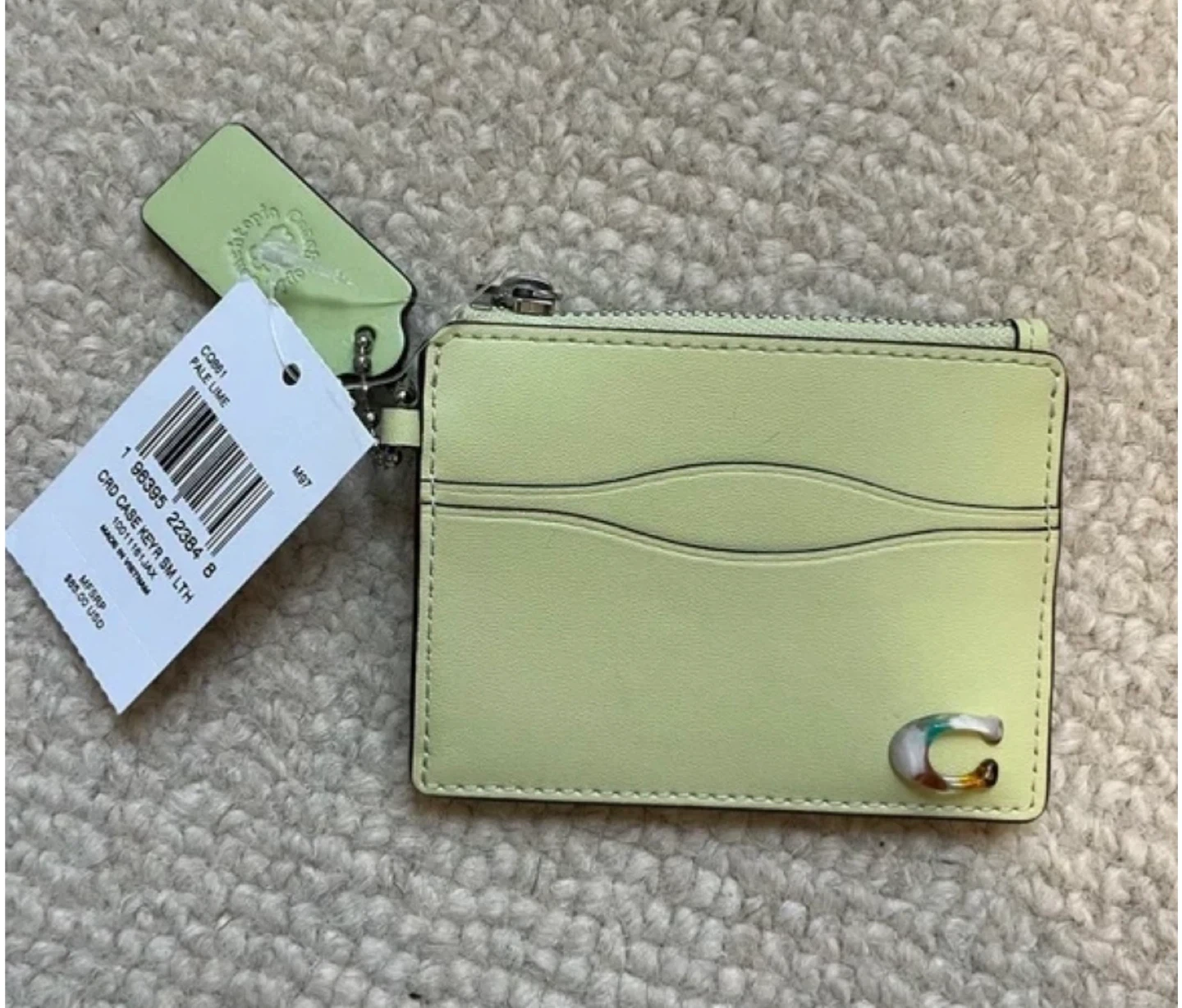 Brand new sold out Coachtopia Coach Zip Card Case w Keyring in a pale lime color. It features a keyring and a small zipper compartment. The original price was $85, selling for $70.