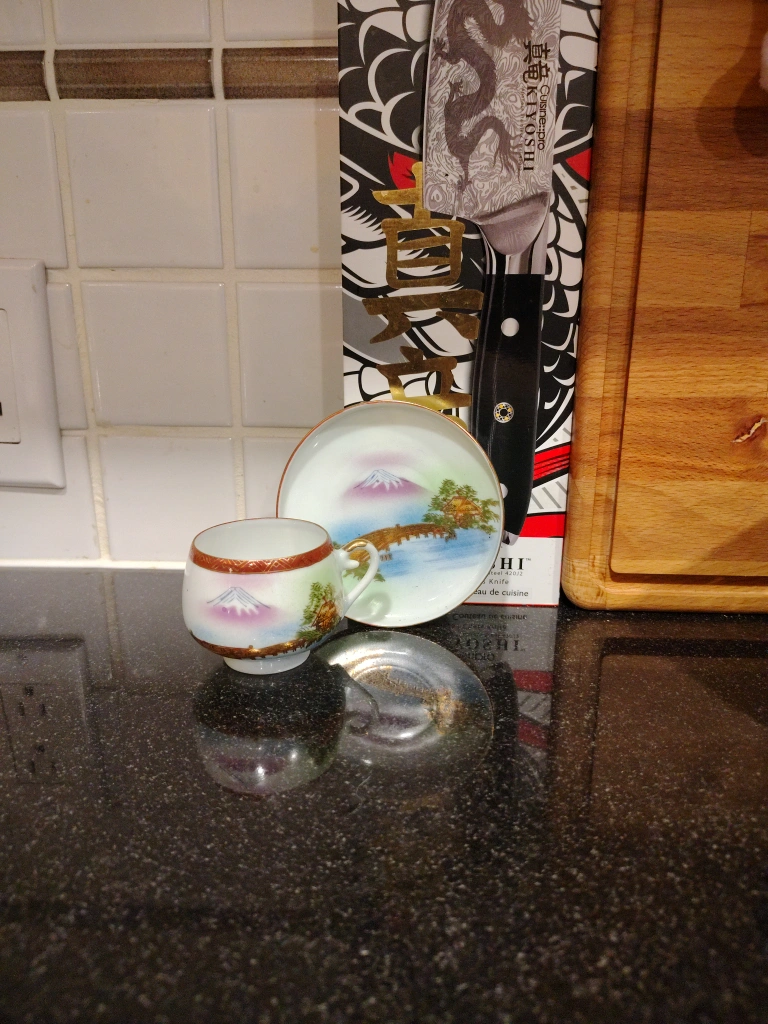 Selling a lovely Kutoni China Japanese tea cup set featuring a beautiful Mount Fuji design! This set includes a cup, and saucer. The delicate artwork and traditional style make it a charming addition to any collection or a thoughtful gift for a tea lover.