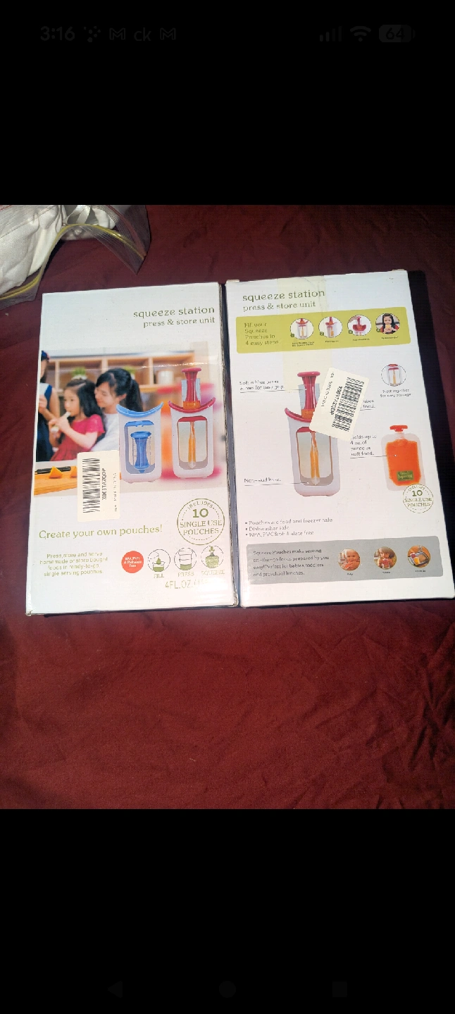 78Create your own pouches with this Squeeze Station press & store unit! It includes 10 single-use pouches and is designed to press, store, and serve homemade or store-bought foods. The pouches are food and freezer safe, and also dishwasher safe. Perfect for babies, toddlers, and preschool lunches