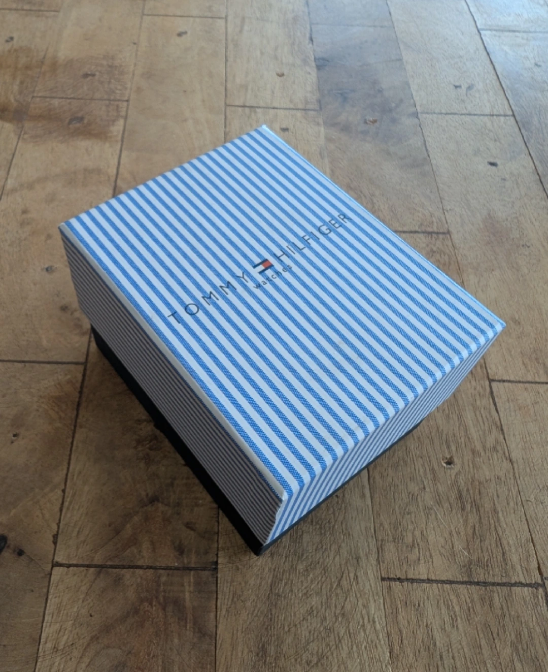 Tommy Hilfiger watch in silver. It comes with multiple face options as seen in the second photo and links to insert or detach based on your wrist size. The watch is in great condition, the battery may need replacing though, as it's been kept in storage for a while.