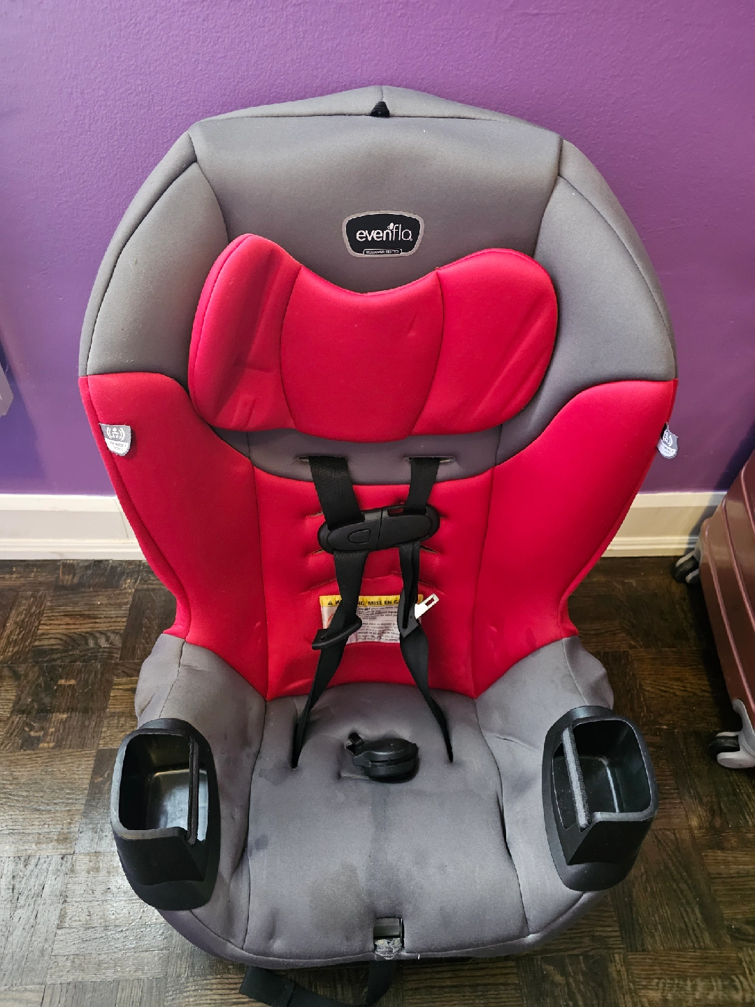 26Selling an Evenflo Forever Edition car seat in grey and red. It's in good condition and ready for a new home! It has two cup holders