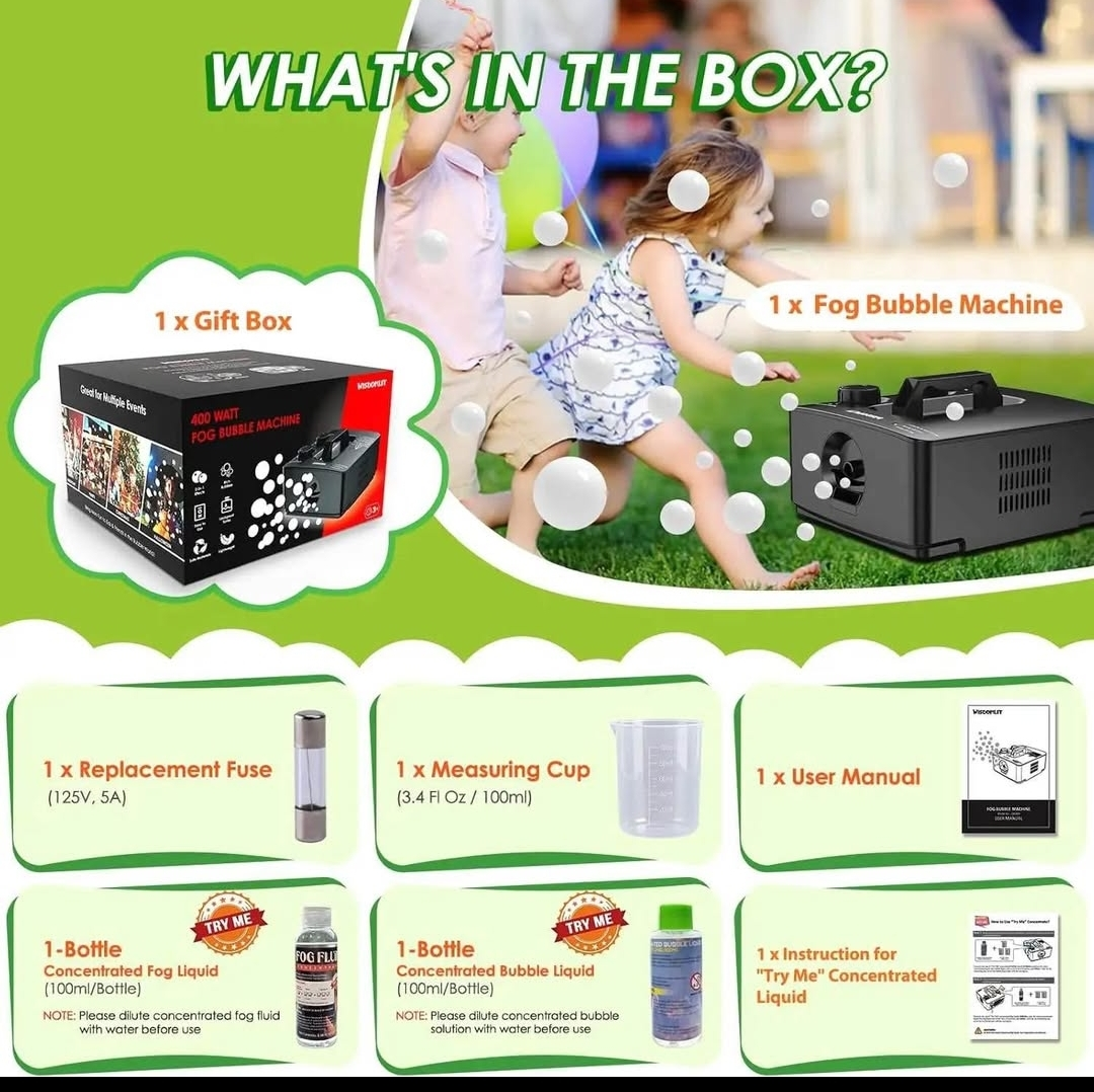Selling a Visoput 400 Watt Fog Bubble Machine! It's great for multiple events and comes with everything in the box: