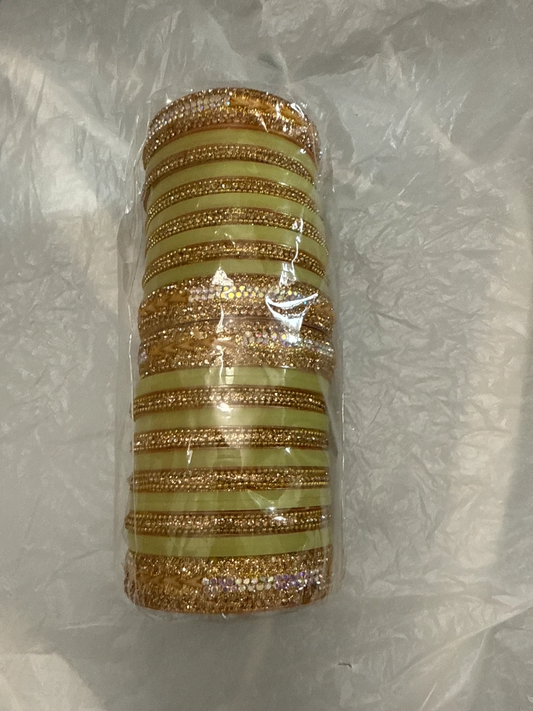 20Set of 12 bangles, light green and gold. Never worn, still in original packaging