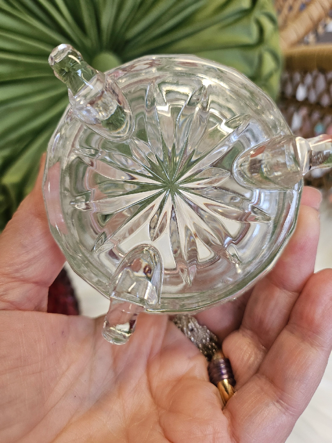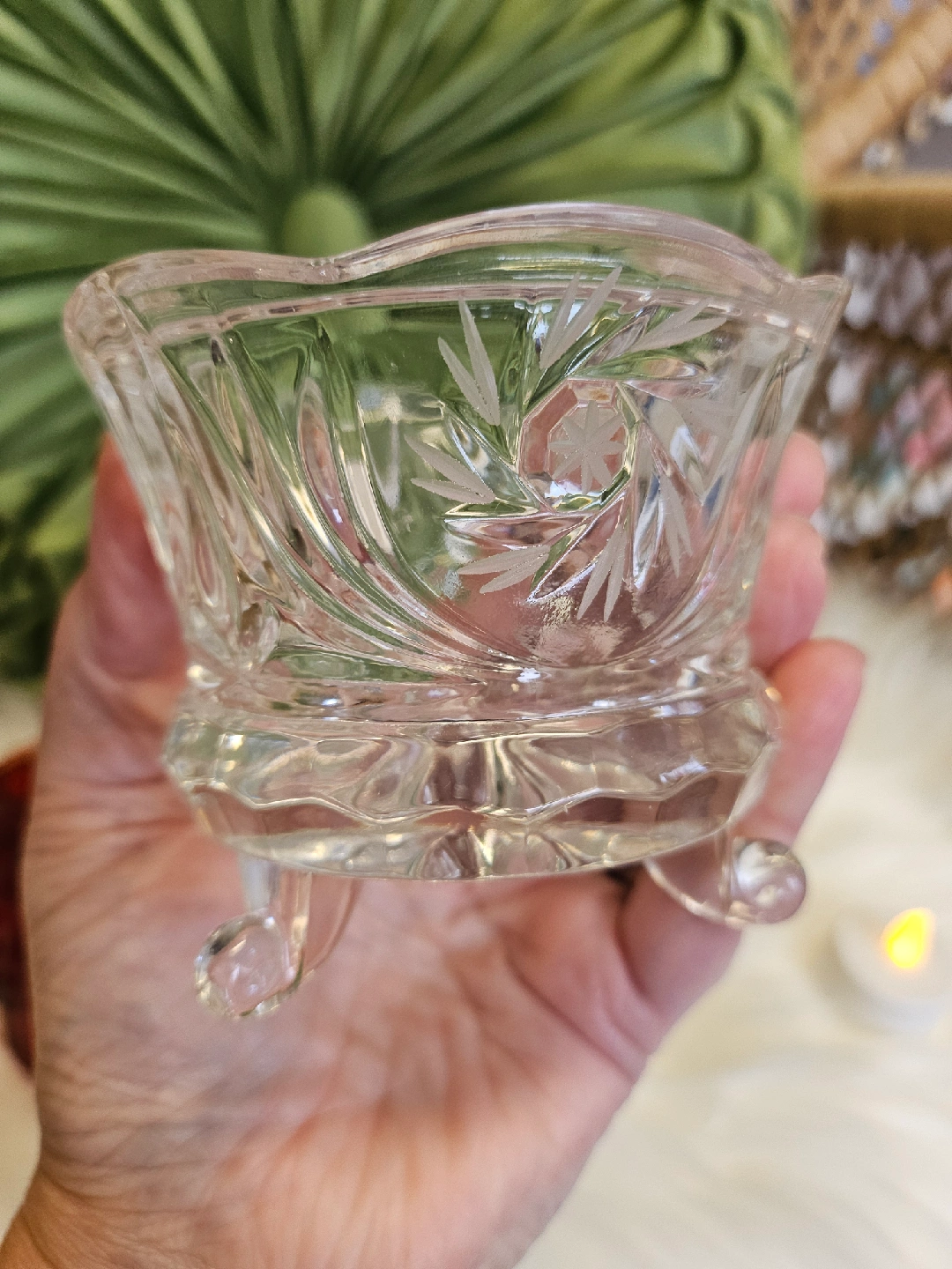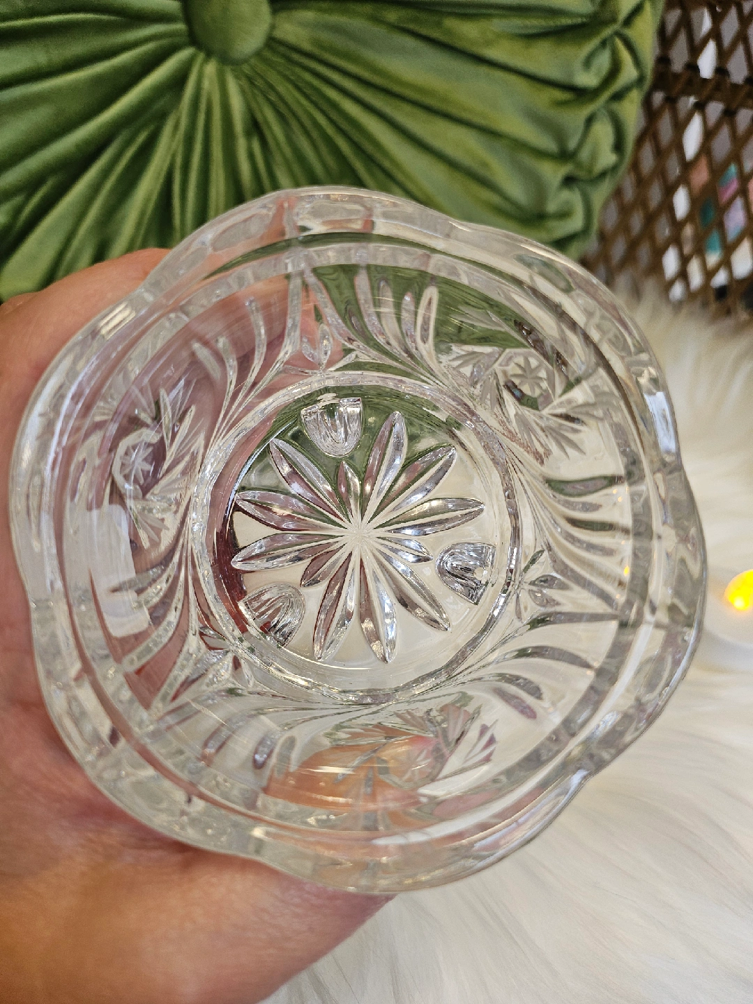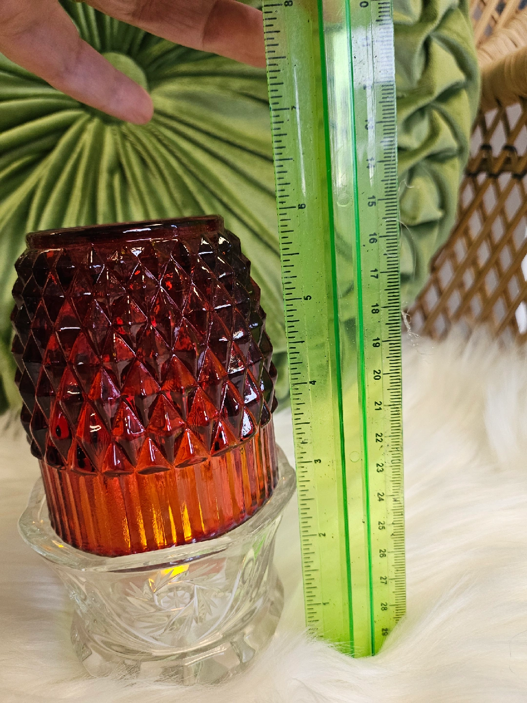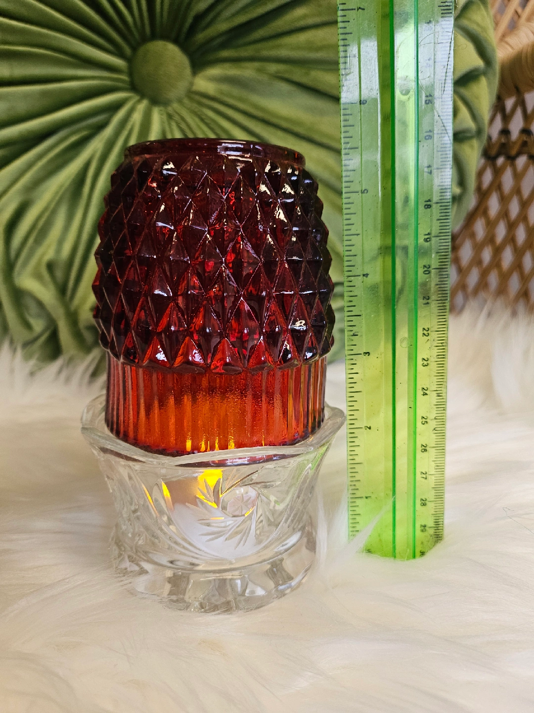 21A pretty red fairy lamp glass candle holder with a diamond pattern on top and a clear glass base. Perfect for adding a touch of warmth to any room!
