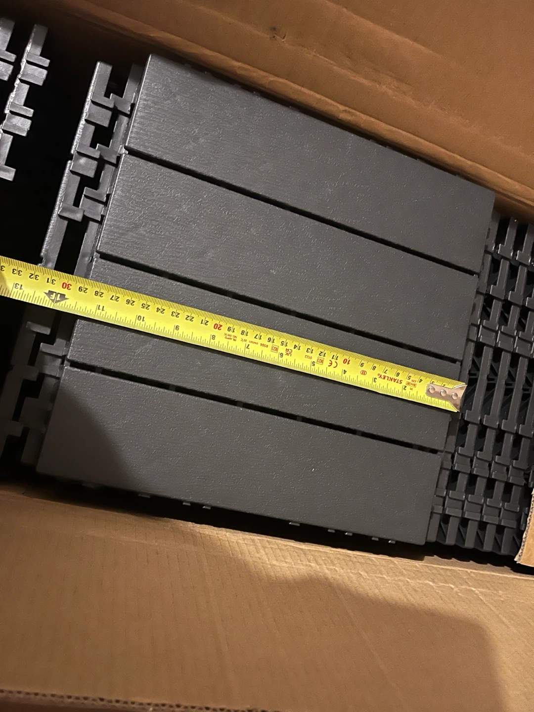 177Selling a set of wood panel interlocking deck tiles. They are in their original box. The box includes the interlocking components. Each tile measures approximately 12x12 inches.