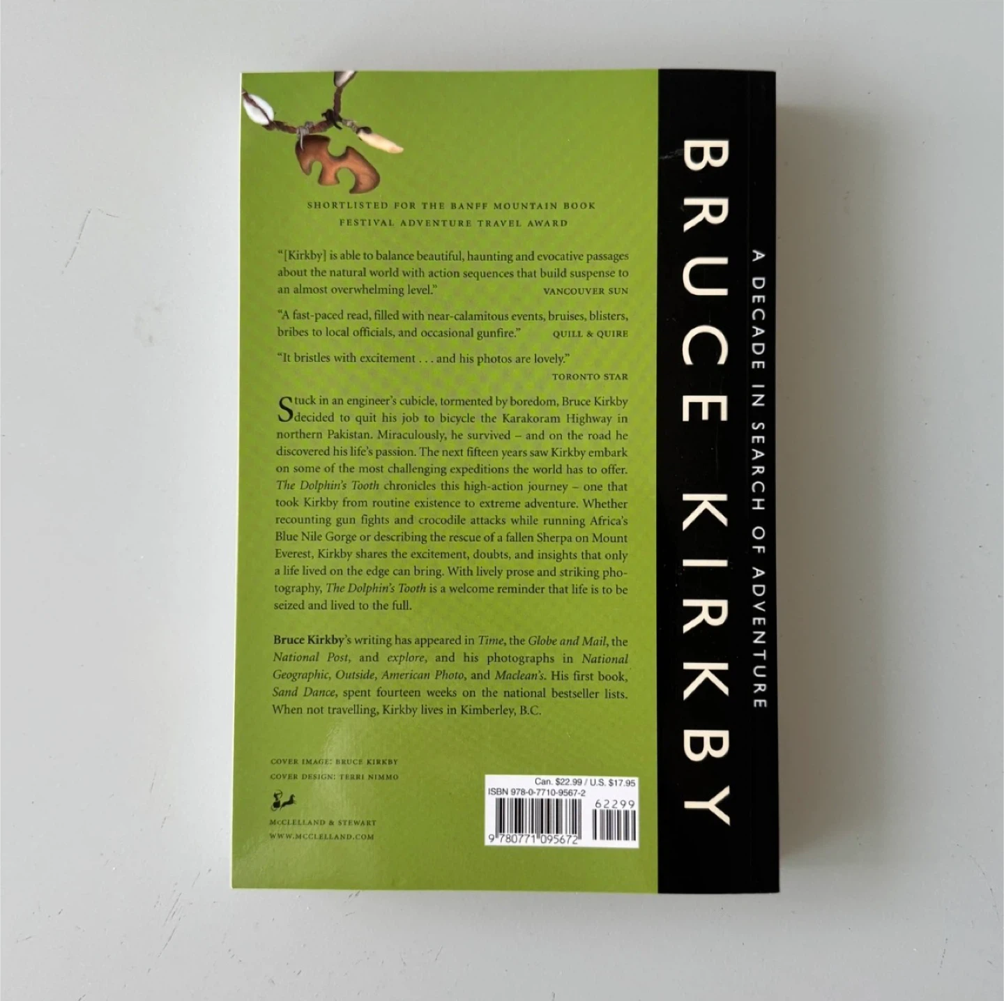 Selling "The Dolphin's Tooth: A Decade in Search of Adventure" by Bruce Kirkby. It's a travel adventure book. The cover mentions it won a travel award and was shortlisted for the Banff Mountain Book Festival Adventure Travel Award