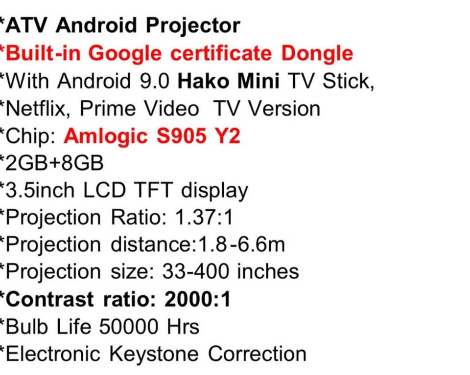 10Brand New ATV Android Projector. Mini and compact (size of hand). Pick up in Markham (Kennedy Rd & 16th Ave). Cash only $250 *ATV Android Projector *Built-in Google certificate Dongle *With Android 9.0 Hako Mini TV Stick, Netflix, Prime Video TV Version Chip: Amlogic S905 Y2 *2GB+8GB *3.5inch LCD TFT display *Projection Ratio: 1.37:1 *Projection distance:1.8-6.6m *Projection size: 33-400 inches *Contrast ratio: 2000:1 *Bulb Life 50000 Hrs *Electronic Keystone Correction