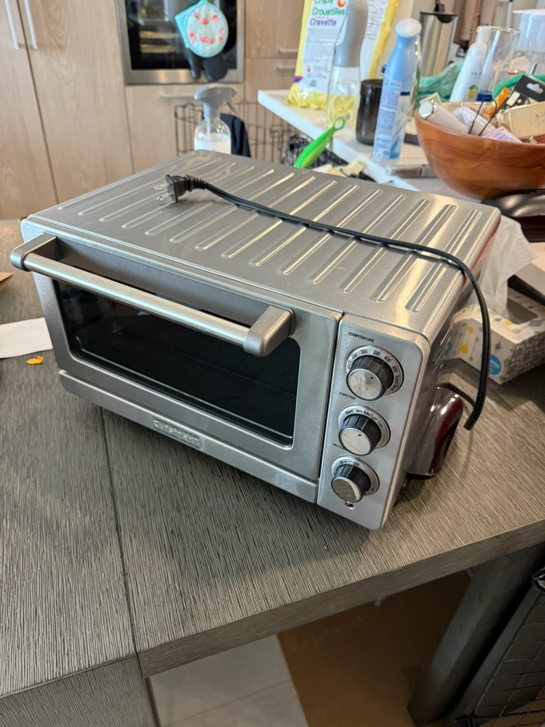 Selling a Cuisinart convection toaster oven broiler. It's in good working condition and ready for a new home! Perfect for small kitchens or anyone who wants a versatile appliance for toasting, baking, and broiling