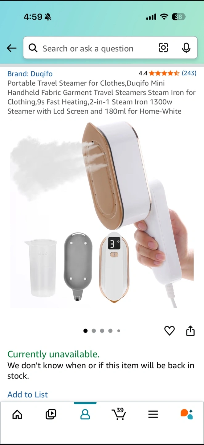 10Selling a Duqifo mini handheld garment steamer in white. It's in great condition and comes with the box! This portable travel steamer is perfect for clothes and features a digital display and fast heating. Also included is a small measuring cup.