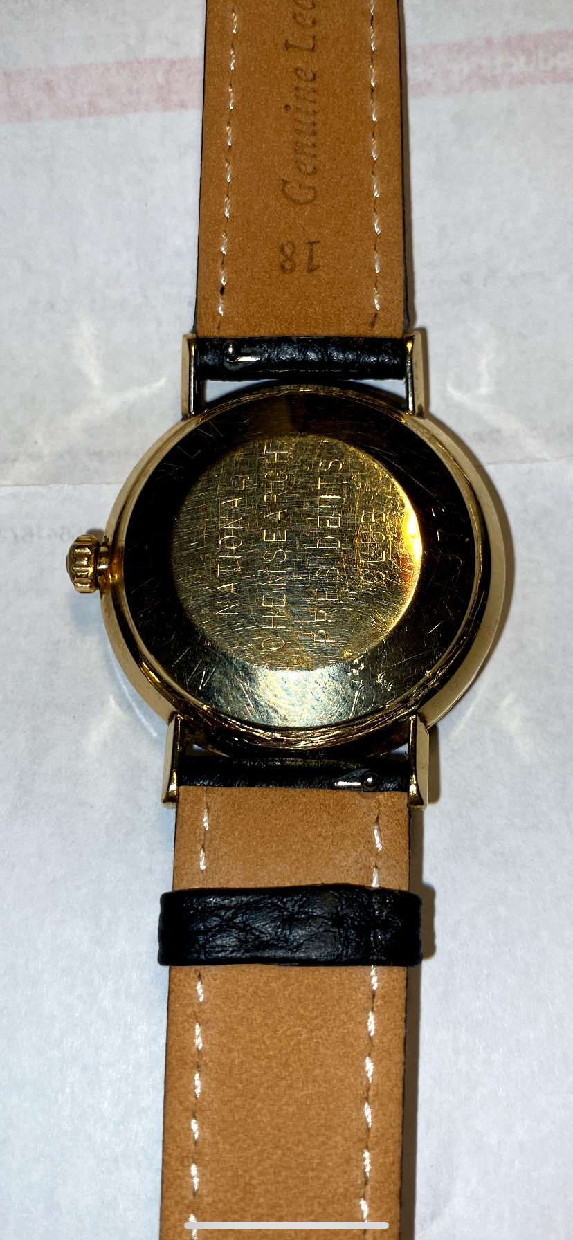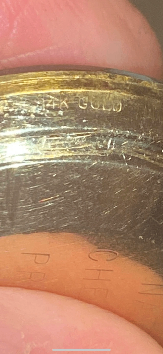 Tested and stamped 14K. Without straps, the weight is approximately 28g, including the watch insides. Unit works, not being sold as scrap, but priced in that area. See pics for more info. Engraved and in shown condition - as is