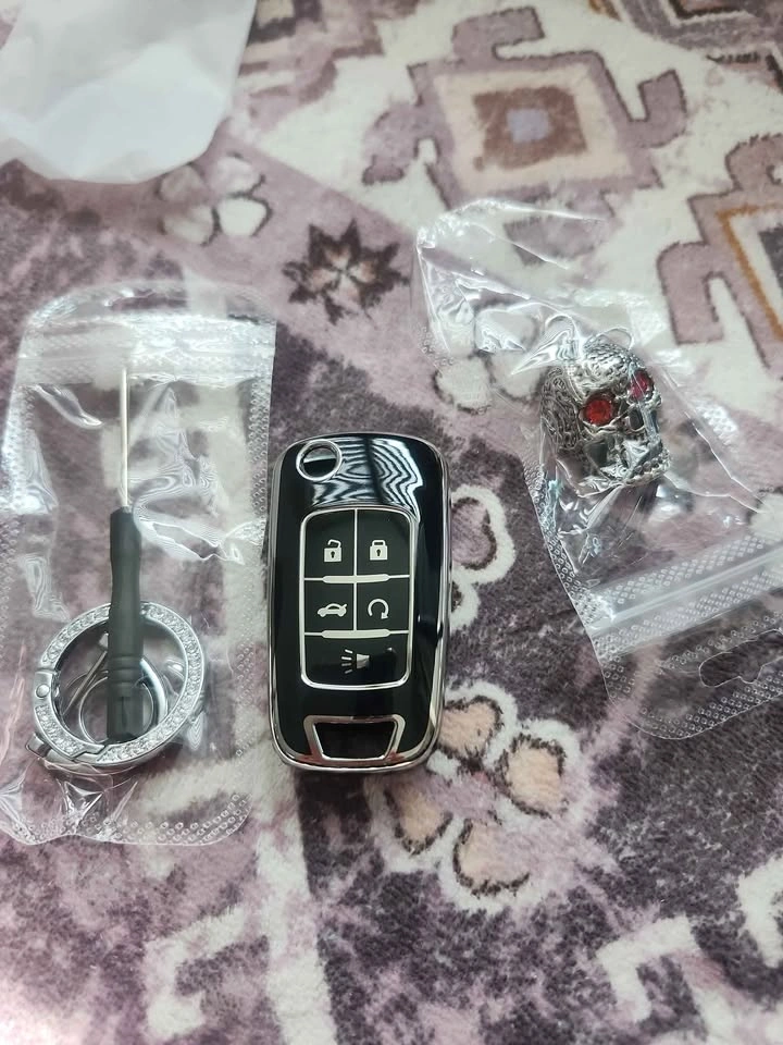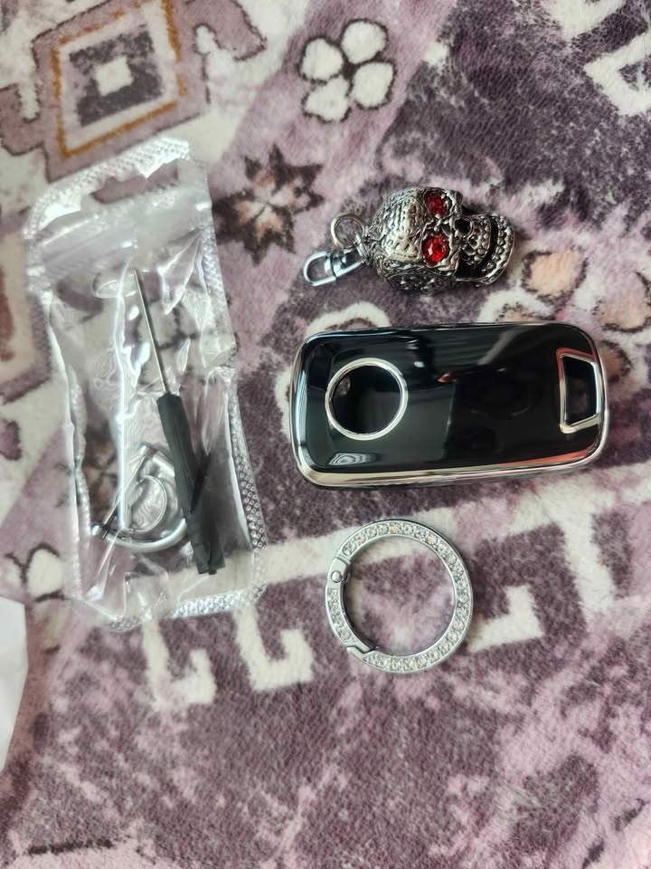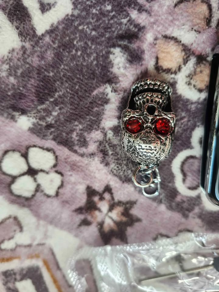 β¨ Rhinestone-Encrusted White Car Key Chain β sparkle meets spooky flair.