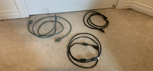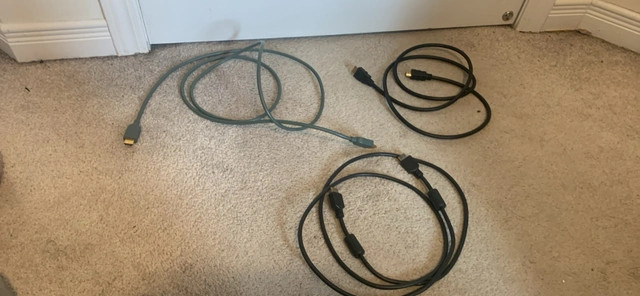 10HDMI CABLES $7 each. Cables of varying lengths and colours. One green, two black. Can easily connect to most screens for a more immersive experience.