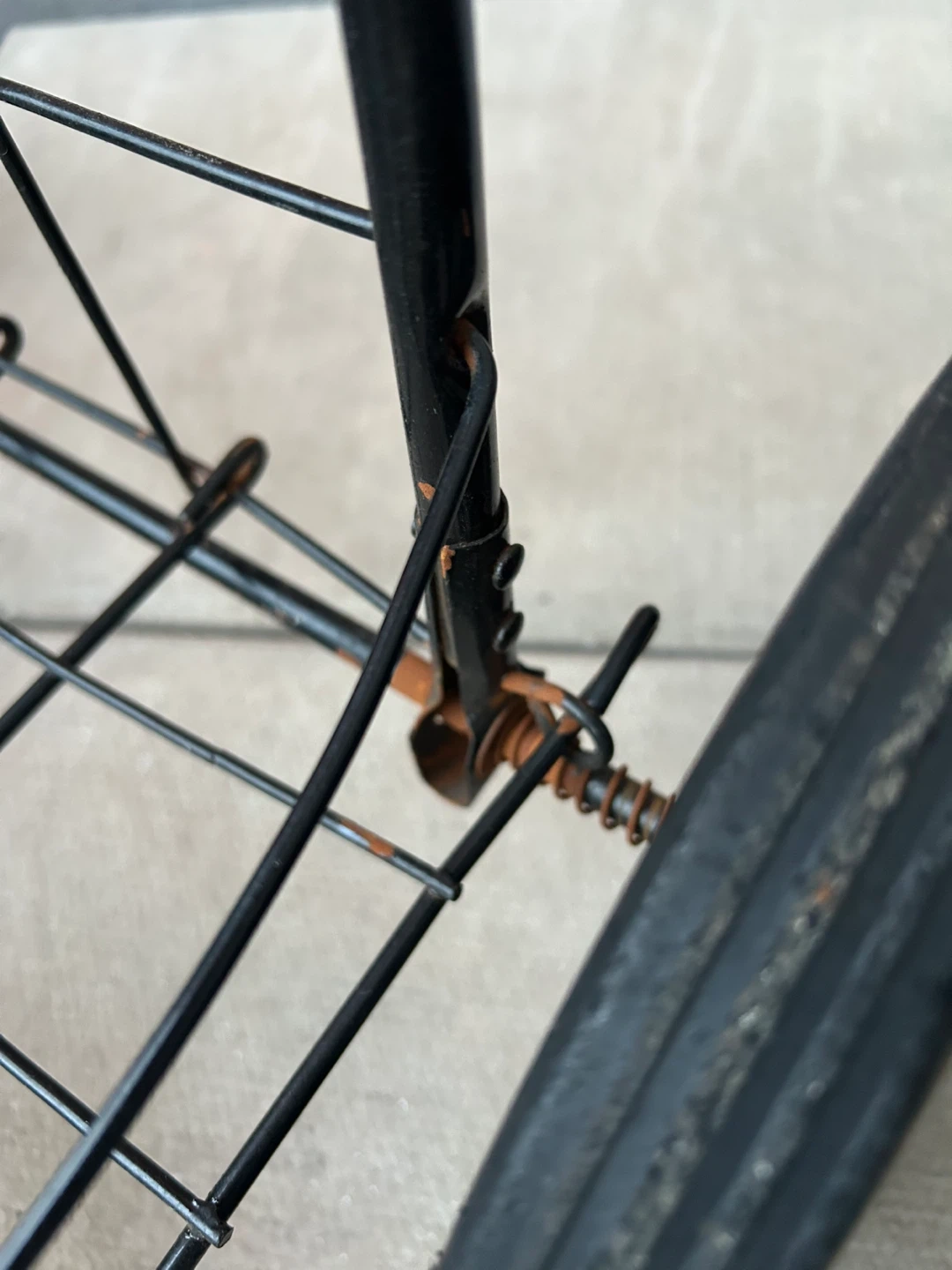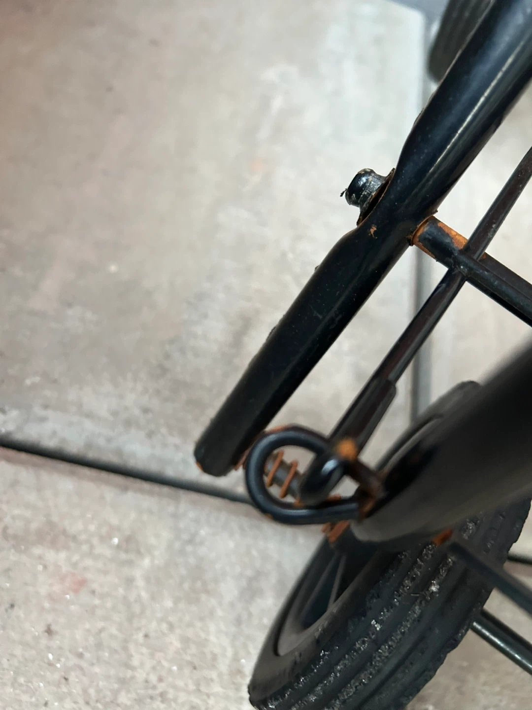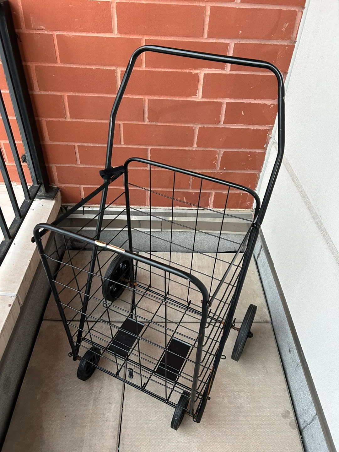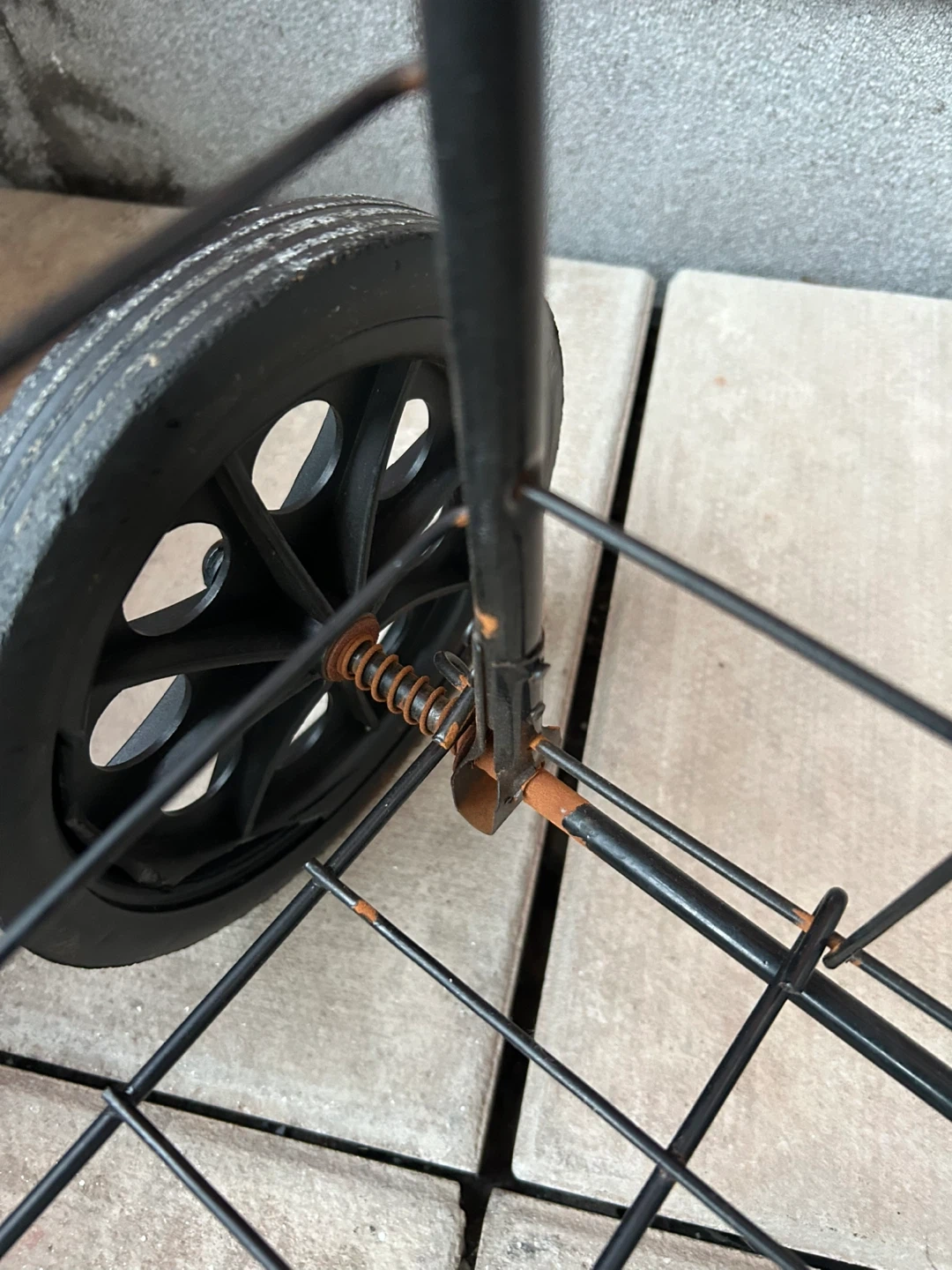 This black metal rolling cart has had better days. It shows some signs of wear and tear, as seen in the photos. May have rust but still rolls around. Perfect for garden, storage or moving items around!