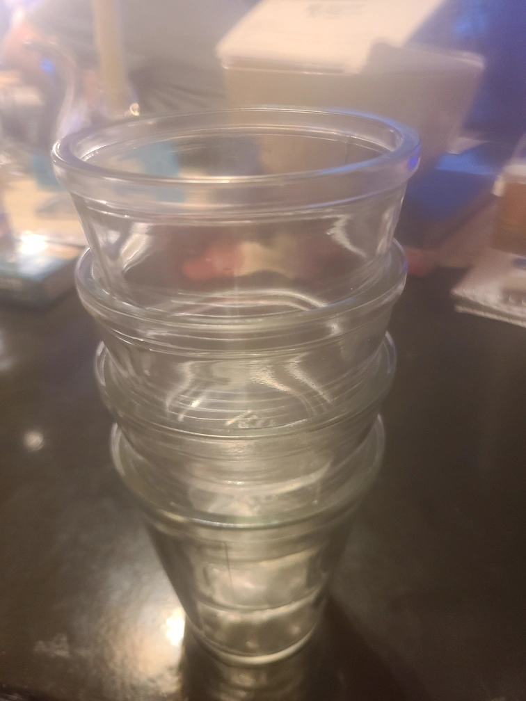 Clear glass dessert cups! They're in great condition and perfect for serving individual desserts or appetizers. They are clear and made of glass. Set of 4. Could also be juice glasses.