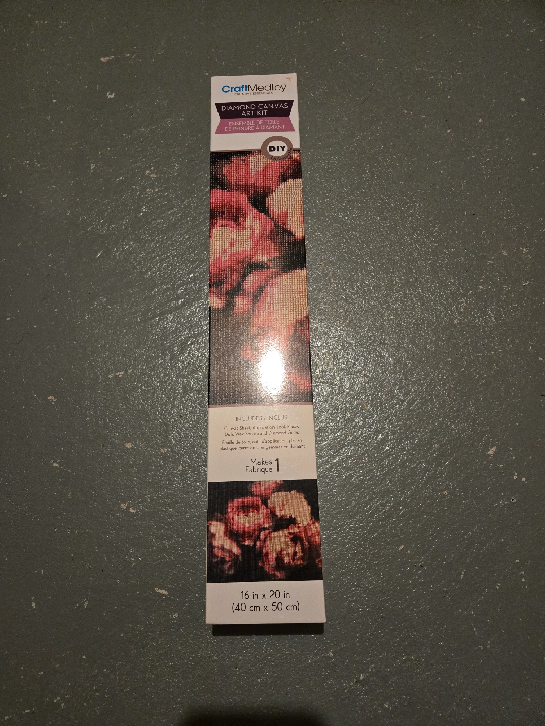 10Get crafty with this Diamond Canvas Art Kit by CraftMedley! It includes everything you need to create a beautiful floral design. The kit contains a canvas sheet, application tool, plastic dish, wax square, and diamond gems. The finished piece will measure 16 in x 20 in (40 cm x 50 cm), perfect for adding a touch of handmade charm to your space