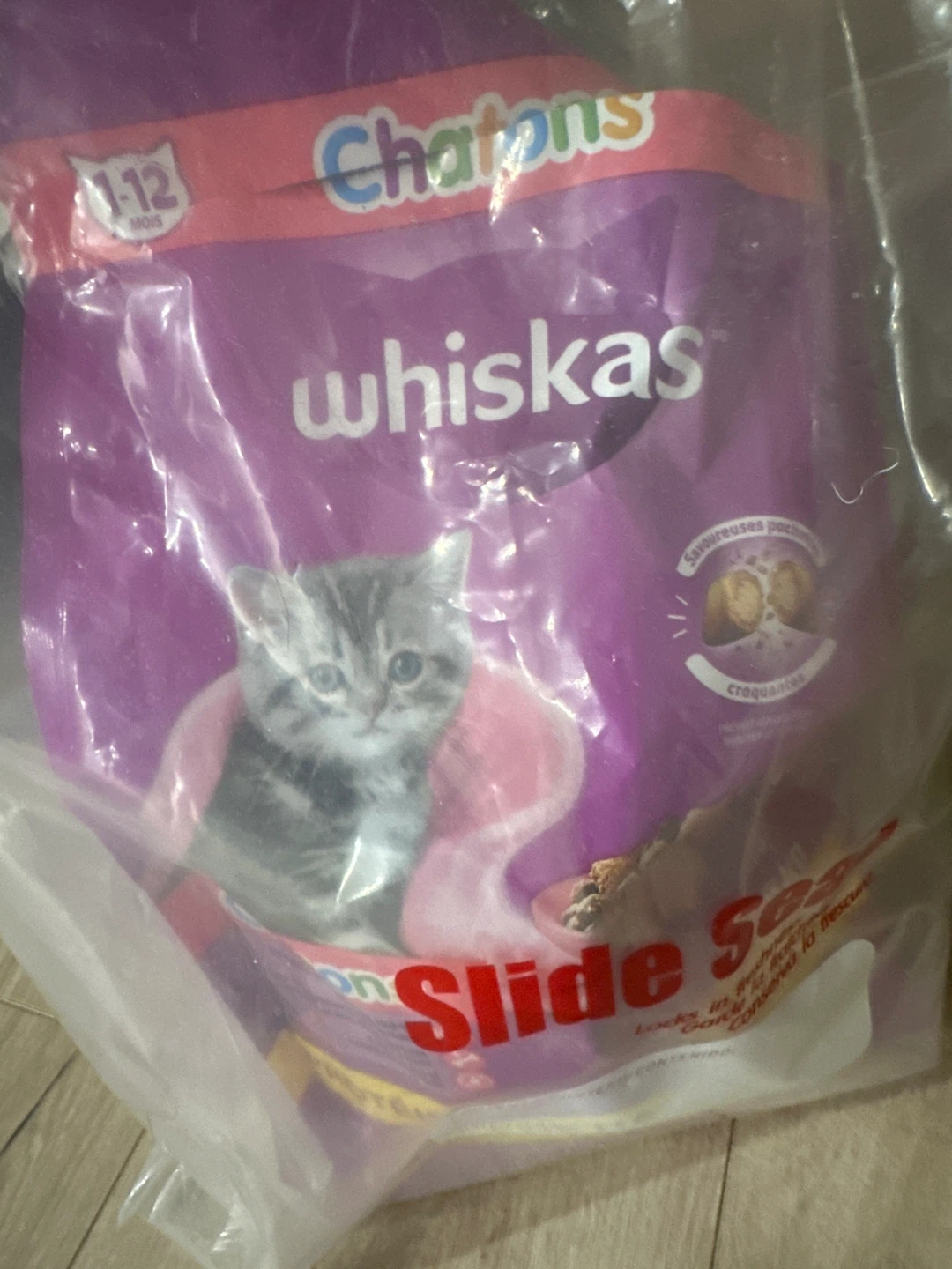 Free a bag of Whiskas kitten food, perfect for kittens aged 1-12 months. Keeps the food fresh and tasty!