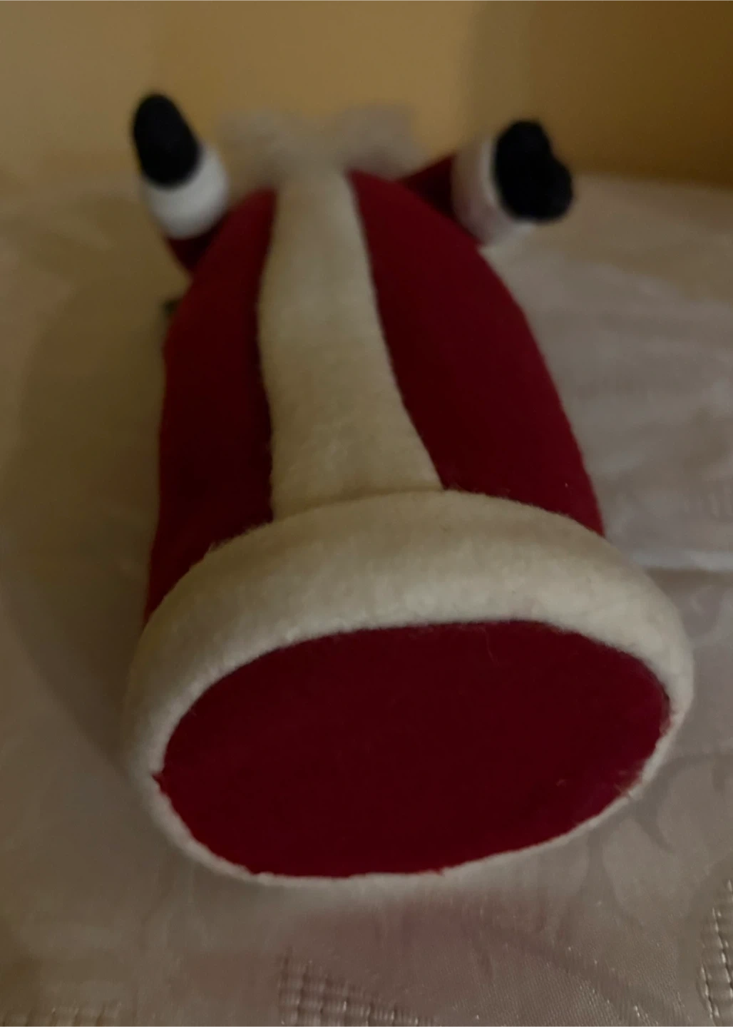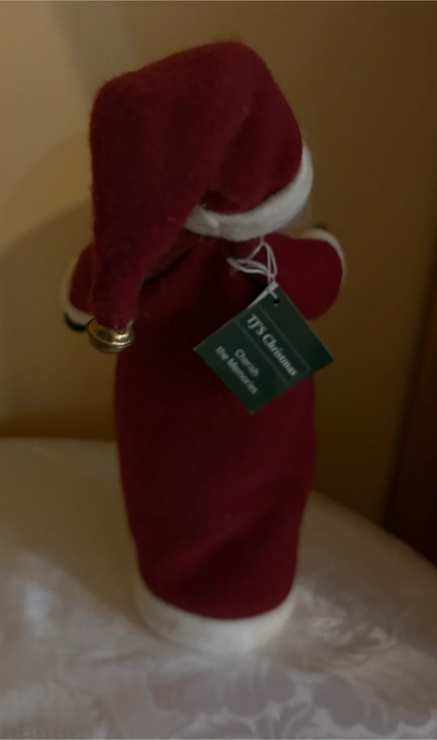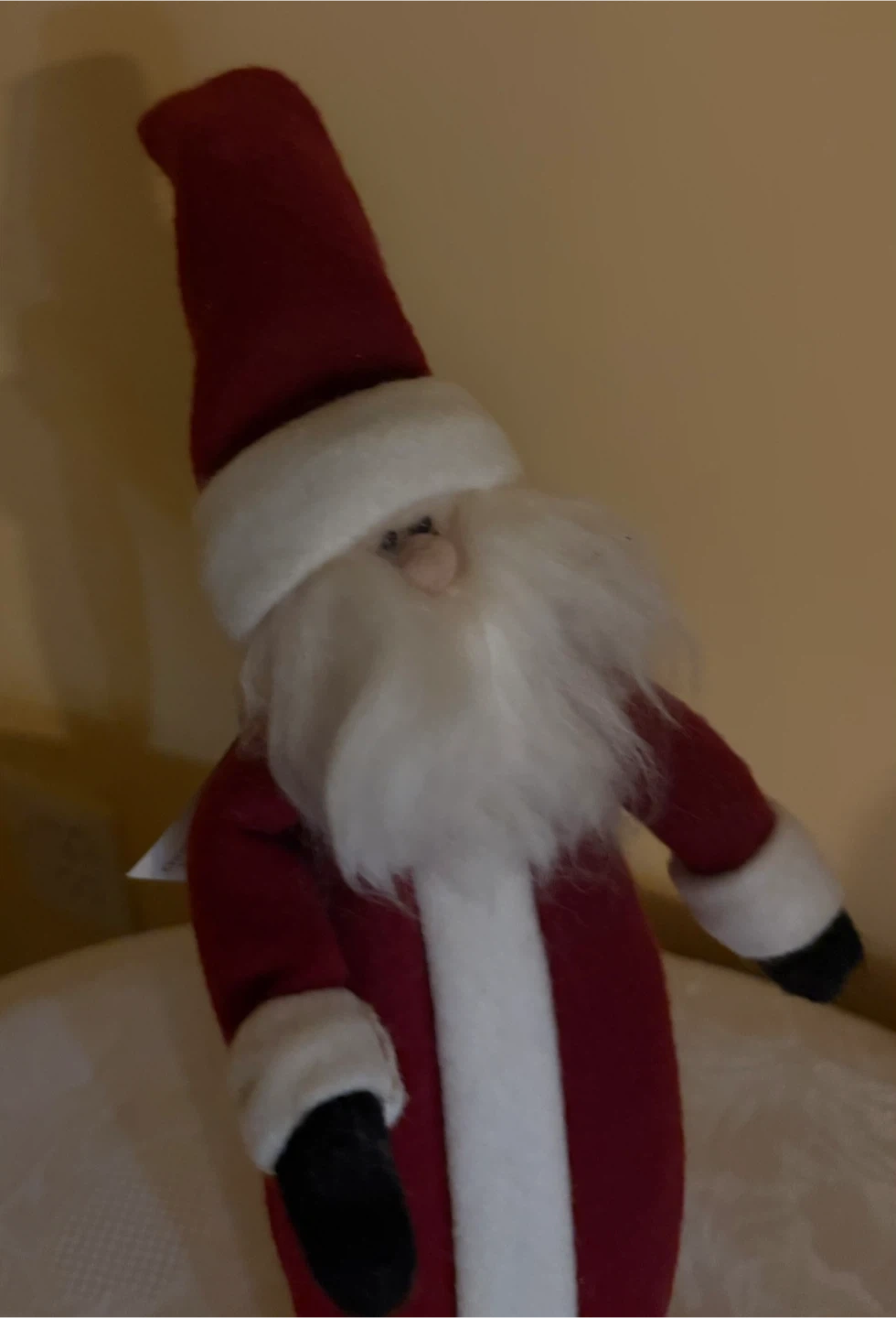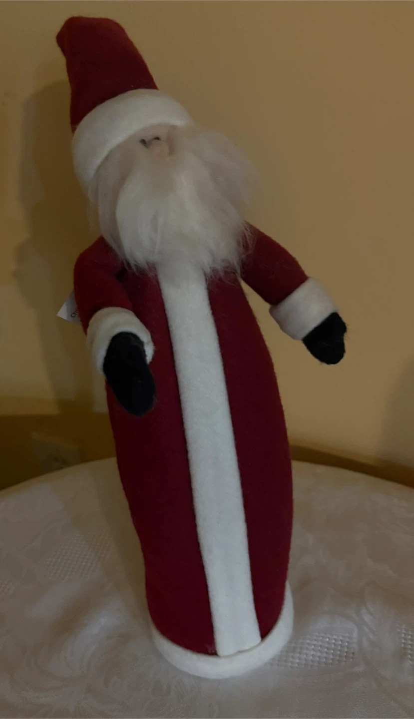 This is a Santa Claus Christmas decoration! It features a red robe with white trim and a long, floppy red hat. Perfect for adding some holiday cheer to your home